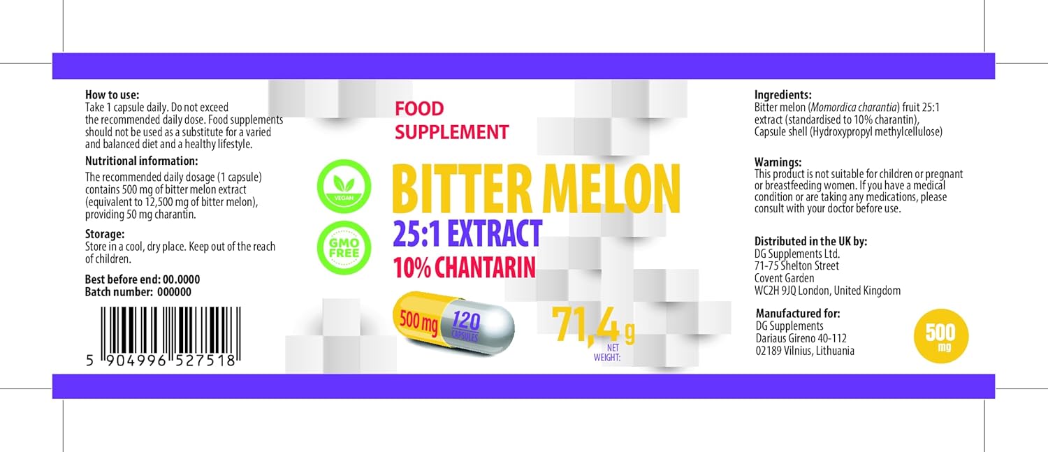 About this item ? HIGH-STRENGTH BITTER MELON EXTRACT β Each capsule delivers a 12,500mg equivalent dose, derived from a 25:1 concentrated extract (500mg per serving) for maximum potency and effectiveness. ? STANDARDIZED TO 10% CHARANTIN β Ensures a concentrated dose of bioactive compounds, traditionally used to support blood sugar levels and metabolic health. ? SUPPORTS HEALTHY BLOOD SUGAR & INSULIN FUNCTION β Bitter Melon is known for its natural properties that help maintain glucose balance and insulin sensitivity. ? AIDS METABOLISM & WEIGHT MANAGEMENT β May support carbohydrate metabolism and fat utilization, helping with natural weight support and energy balance. ? 120 VEGAN CAPSULES β 4-MONTH SUPPLY β A once-daily formula provides a full 4-month supply, offering exceptional value and long-lasting benefits. ? 3RD PARTY LAB TESTED FOR PURITY & SAFETY β Independently tested for heavy metals, contaminants, and potency, ensuring a clean, high-quality supplement you can trust. ? 100% NATURAL, VEGAN & NON-GMO β Free from artificial additives, fillers, and preservatives, making it a pure, plant-based choice for those seeking natural blood sugar support. ? GMP-CERTIFIED MANUFACTURING β Produced under strict Good Manufacturing Practices (GMP) to guarantee premium quality, safety, and consistency in every capsule. βΊ See more product details,? HIGH-STRENGTH BITTER MELON EXTRACT β Each capsule delivers a 12,500mg equivalent dose, derived from a 25:1 concentrated extract (500mg per serving) for maximum potency and effectiveness,? STANDARDIZED TO 10% CHARANTIN β Ensures a concentrated dose of bioactive compounds, traditionally used to support blood sugar levels and metabolic health,? SUPPORTS HEALTHY BLOOD SUGAR & INSULIN FUNCTION β Bitter Melon is known for its natural properties that help maintain glucose balance and insulin sensitivity,? AIDS METABOLISM & WEIGHT MANAGEMENT β May support carbohydrate metabolism and fat utilization, helping with natural weight support and energy balance,? 120 VEGAN CAPSULES β 4-MONTH SUPPLY β A once-daily formula provides a full 4-month supply, offering exceptional value and long-lasting benefits,? 3RD PARTY LAB TESTED FOR PURITY & SAFETY β Independently tested for heavy metals, contaminants, and potency, ensuring a clean, high-quality supplement you can trust,? 100% NATURAL, VEGAN & NON-GMO β Free from artificial additives, fillers, and preservatives, making it a pure, plant-based choice for those seeking natural blood sugar support,? GMP-CERTIFIED MANUFACTURING β Produced under strict Good Manufacturing Practices (GMP) to guarantee premium quality, safety, and consistency in every capsule