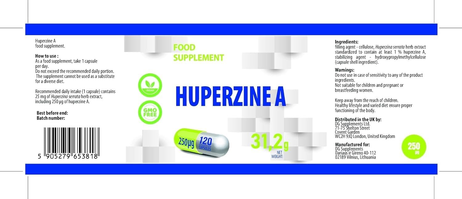 Product description Hepatica Huperzine A 250mcg β 120 Vegan Capsules | High-Strength Memory, Focus & Cognitive Support Ingredients Filling agent Cellulose, Huperzine Seratta herb standartised to at least 1% Huperzine A, hydroxypropylmethyl cellulose (capsule shell ingredient) P.when('A').execute(function(A) { A.on('a:expander:toggle_description:toggle:collapse', function(data) { window.scroll(0, data.expander.$expander[0].offsetTop-100); }); }); Directions As a food supplement take 1 vegan capsule daily, preferably with a glass of water. Recommended daily intake (1 capsule) contains 250mcg of Huperzine A. Each bottle contains 120 capsules. 4 Month supply Safety Warning Do not exceed the recommended daily portion. The supplements can not be used as a substitute for a diverse diet. Do not use in case of sensitivity to any of the product ingredients. Not suitable for children and pregnant or breastfeeding women. Keep away from the reach of children. See more,? High-Strength Huperzine A β 250mcg Per Capsule β Delivers a potent dose of pure Huperzine,? Enhances Memory & Learning,? Boosts Memory, Learning & Retention,? Enhances Focus & Mental Clarity,? Reduces Stress & Promotes Relaxation,? 120 Vegan Capsules β 4-Month Supply β A long-lasting, easy-to-swallow supplement, designed for consistent daily cognitive support,? No Fillers, No Bulking Agents, No Artificial Additives β A clean and pure formula, free from preservatives, unnecessary fillers, gluten, and GMOs,? 3rd Party Lab Tested & GMP Certified β Rigorously tested for purity, potency, and safety, ensuring a high-quality Huperzine A supplement you can trust