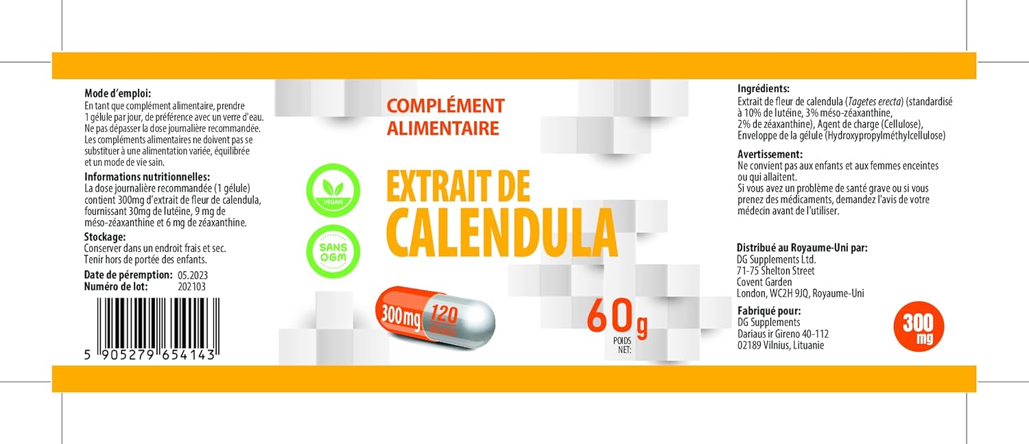 Product description Lutein 30mg, Meso-Zeaxanthin 9mg, Zeaxanthin 6mg Complex β Macu Eye Supplement | 300mg Marigold Extract | 120 Vegan Capsules | High-Strength Vision Support Protect and support eye health and vision clarity with our high-strength Lutein, Meso-Zeaxanthin, and Zeaxanthin complex. These powerful carotenoids, derived from Marigold Extract (Tagetes erecta), are scientifically studied for their role in blue light protection, antioxidant defense, and overall eye wellness. Each serving delivers a precisely balanced 30mg of Lutein, 9mg of Meso-Zeaxanthin, and 6mg of Zeaxanthin, providing support for long-term eye health. Why Choose Our Lutein & Zeaxanthin Complex ? High-Strength Vision Support β 30mg Lutein, 9mg Meso-Zeaxanthin, 6mg Zeaxanthin β A scientifically backed formula designed to support eye health and visual acuity. ? 300mg Marigold Extract β Natural & Potent Source β Derived from pure marigold flowers, ensuring maximum purity and effectiveness. ? 120 Vegan Capsules β 4-Month Supply β A long-lasting supply of easy-to-swallow, plant-based capsules. ? 3rd Party Lab Tested for Purity & Safety β Rigorously tested to ensure high quality, potency, and effectiveness. ? Gluten-Free, Non-GMO & No Artificial Additives β A clean, pure formula, free from unnecessary fillers or synthetic ingredients. The Benefits of Lutein, Meso-Zeaxanthin & Zeaxanthin ??? ??? Supports Healthy Vision & Eye Clarity β Provides essential carotenoids to maintain optimal eye function. ?? Acts as a natural sunblock for the eyes, reducing UV-related damage. ????? Age-Related Eye Support β Helps support long-term eye health and visual performance. ?? Natural, Plant-Based & Highly Absorbable β Extracted from premium marigold flowers, ensuring high bioavailability. Ingredients Marigold (Tagetes erecta L.) extract, standartized to 10% Lutein, 3% Meso-Zeaxanthin & 2% Zeaxanthin, bulking agent - cellulose, stabiliser - hydroxypropyl-methylcellulose (capsule shell ingredient). P.when('A').execute(function(A) { A.on('a:expander:toggle_description:toggle:collapse', function(data) { window.scroll(0, data.expander.$expander[0].offsetTop-100); }); }); Directions As a food supplement, take 1 vegan capsule daily, preferably with a glass of water. Recommended daily intake 1 capsules contains Lutein 30mg, Meso-zeaxanthin 9mg, Zeaxanthin 6mg . Each bottle contains 120 capsules. 4 Month supply Safety Warning Do not exceed the recommended daily portion. The supplements can not be used as a substitute for a diverse diet. Do not use in case of sensitivity to any of the product ingredients. Not suitable for children and pregnant or breastfeeding women. Keep away from the reach of children. See more,? High-Strength Eye Health Formula β 30mg Lutein, 9mg Meso-Zeaxanthin, 6mg Zeaxanthin β A scientifically backed blend of key carotenoids to support vision clarity,? Helps filter harmful blue light from screens, reducing eye fatigue, strain, and discomfort for those who use computers or smartphones frequently,? Lutein and Zeaxanthin are naturally found helping shield from oxidative damage and age-related decline,? Antioxidant Protection for Eye Longevity β Helps neutralize free radicals that contribute to vision deterioration, supporting long-term eye health,? 300mg Marigold Extract β Natural & Highly Bioavailable β Derived from pure marigold flowers, ensuring a concentrated and effective source of Lutein and Zeaxanthin,? 120 Vegan Capsules β 4-Month Supply β A long-lasting, easy-to-swallow supplement, providing consistent daily vision support,? Pure & Clean Formula β No Fillers or Additives β Gluten-Free, Non-GMO, and free from artificial preservatives, allergens, and unnecessary fillers,? 3rd Party Lab Tested & GMP Certified β Rigorously tested for purity, potency, and safety, ensuring a high-quality eye supplement you can trust,You should not use calendula if you are allergic to ragweed, daisies, marigold, or plants in the Asteraceae/Compositae family, as it could cause you to have an allergic reaction