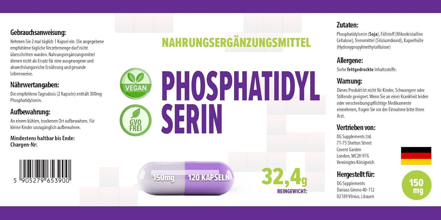 Product description Hepatica Phosphatidylserine 150mg | 120 Vegan Capsules | High Strength Brain, Memory & Cognitive Support | 3rd Party Lab Tested | Gluten & GMO Free Enhance Memory, Focus & Brain Health Naturally Phosphatidylserine is a key phospholipid that plays a vital role in brain cell communication, memory function, and cognitive performance. Naturally found in brain cell membranes, it helps support mental clarity, learning ability, and focus while also aiding in stress reduction and neural health. Our high-strength 150mg formula ensures maximum absorption and effectiveness, making it ideal for students, professionals, and older adults. Why Choose Hepatica Phosphatidylserine ? High Strength 150mg Formula β Provides an optimal dose to enhance cognitive function, learning ability, and focus ? Supports Brain & Nervous System Function β Promotes healthy neural communication, aiding in mental clarity and faster cognitive processing ? Boosts Memory & Learning Retention β Helps improve recall ability, concentration, and cognitive endurance ? Reduces Brain Fog & Mental Fatigue β Supports focus, stress management, and emotional well-being, making it ideal for students, professionals, and older adults ? 120 Vegan Capsules β 2-Month Supply β A once-daily formula for long-lasting benefits and great value ? 3rd Party Lab Tested for Purity & Safety β Independently tested for heavy metals, contaminants, and potency ? Gluten-Free, Non-GMO & Vegan-Friendly β Free from artificial additives, fillers, and allergens, ensuring a clean and effective supplement ? GMP-Certified Manufacturing β Produced under strict Good Manufacturing Practices (GMP) to ensure premium quality and consistency The Benefits of Phosphatidylserine Scientific research has shown that Phosphatidylserine may: ? Improve memory recall and cognitive sharpness ? Enhance focus, concentration, and learning ability ? Support stress management and emotional balance ? Promote brain cell longevity and neuroprotection Pure, Potent & Brain-Boosting Formula Our vegan, gluten-free, and non-GMO Phosphatidylserine supplement provides a clean and effective way to enhance cognitive performance, memory, and brain health. Each capsule is free from artificial coatings, preservatives, or unnecessary fillers, ensuring maximum absorption and bioavailability. Support Your Brain & Cognitive Function Naturally Enhance your mental clarity, focus, and memory with our high-strength Phosphatidylserine supplement. Add to your basket today and feel the difference! Ingredients Phosphatidylserine, bulking agent: microcrystaline cellulose, anticaking agent- silicon dioxide, stabilizing agent - hydroxypropylmethylcellulose (capsule shell ingredient) P.when('A').execute(function(A) { A.on('a:expander:toggle_description:toggle:collapse', function(data) { window.scroll(0, data.expander.$expander[0].offsetTop-100); }); }); Directions As a food supplement take 2 vegan capsules daily, preferably with a glass of water. Recommended daily intake (2 capsules) contains 300 mg of phosphatidylserine. Each bottle contains 120 capsules. 2 Month supply Safety Warning Do not exceed the recommended daily portion. The supplements can not be used as a substitute for a diverse diet. Do not use in case of sensitivity to any of the product ingredients. Not suitable for children and pregnant or breastfeeding women. Keep away from the reach of children. See more,? HIGH-STRENGTH PHOSPHATIDYLSERINE 150MG β Each capsule delivers a potent 150mg dose, essential for brain health, memory, and cognitive performance,? SUPPORTS MEMORY & COGNITIVE FUNCTION β Helps improve memory recall, concentration, and learning ability, making it ideal for students, professionals, and older adults,? ENHANCES FOCUS & MENTAL CLARITY β Aids in reducing brain fog and mental fatigue, promoting sharp thinking and cognitive endurance,? HELPS MANAGE STRESS & EMOTIONAL WELL-BEING β Supports healthy cortisol levels, helping the body cope with stress and improve mood balance,? 120 VEGAN CAPSULES β 2-MONTH SUPPLY β A two-daily formula provides a full 2-month supply, offering exceptional value and long-lasting benefits,? 3RD PARTY LAB TESTED FOR PURITY & SAFETY β Independently tested for heavy metals, contaminants, and potency, ensuring a clean, high-quality supplement you can trust,? GLUTEN-FREE, NON-GMO & VEGAN-FRIENDLY β Made with 100% plant-based ingredients, free from artificial additives, fillers, and allergens,? GMP-CERTIFIED MANUFACTURING β Produced under strict Good Manufacturing Practices (GMP) to guarantee premium quality, safety, and consistency in every capsule
