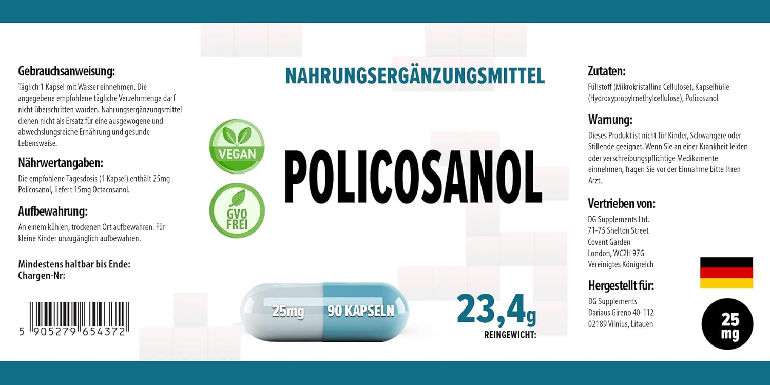 Product description Hepatica Policosanol 25mg | 90 Vegan Capsules | High Strength Cholesterol & Heart Health Support | 3rd Party Lab Tested | Non-GMO & Gluten-Free Naturally Supports Healthy Cholesterol & Cardiovascular Function Policosanol is a natural plant-derived compound known for its ability to support healthy cholesterol levels, improve circulation, and promote overall heart health. Our high-strength 25mg formula ensures optimal bioavailability and effectiveness, making it an excellent supplement for those looking to manage cholesterol levels, support cardiovascular wellness, and enhance overall vitality. Why Choose Our Policosanol Supplement ? High-Strength 25mg Formula β Provides a clinically studied dose of Policosanol, supporting healthy lipid levels and cardiovascular health. ? Supports Healthy Cholesterol Levels β May help reduce LDL (bad) cholesterol while increasing HDL (good) cholesterol, promoting balanced lipid levels. ? Promotes Heart & Circulatory Health β Aids in improving blood flow and circulation, helping to support cardiovascular wellness and maintain healthy arteries. ? Enhances Energy & Metabolism β Supports healthy mitochondrial function, helping to reduce fatigue and improve energy levels. ? 90 Vegan Capsules β 3-Month Supply β A once-daily formula for long-lasting benefits and excellent value. ? 3rd Party Lab Tested for Purity & Safety β Independently tested for heavy metals, contaminants, and potency. ? 100% Natural, Vegan & Non-GMO β Free from artificial additives, fillers, and preservatives. ? GMP-Certified Manufacturing β Produced under strict Good Manufacturing Practices (GMP) for premium quality and consistency. The Benefits of Policosanol for Heart & Cholesterol Health Policosanol is widely recognized for its ability to: ? Maintain healthy cholesterol levels & lipid balance ? Support cardiovascular function & circulation ? Improve energy production & metabolic health ? Enhance arterial health & reduce oxidative stress Pure, Potent & Science-Backed Formula Unlike synthetic cholesterol supplements, our plant-based Policosanol offers superior absorption and effectiveness for long-term heart health support. Support Your Heart & Cholesterol Levels Naturally Take control of your heart health, circulation, and cholesterol balance with our high-strength Policosanol supplement. Add to your cart today and experience the benefits! Ingredients Policosanol, stabilizing agent - hydroxypropylmethylcellulose (capsule shell ingredient). P.when('A').execute(function(A) { A.on('a:expander:toggle_description:toggle:collapse', function(data) { window.scroll(0, data.expander.$expander[0].offsetTop-100); }); }); Directions As a food supplement take 1 vegan capsule daily, preferably with a glass of water. Recommended daily intake (1 capsule) contains Policosanol 25mg. Each bottle contains 90 capsules. 3 Months supply Safety Warning Do not exceed the recommended daily portion. The supplements can not be used as a substitute for a diverse diet. Do not use in case of sensitivity to any of the product ingredients. Not suitable for children and pregnant or breastfeeding women. Keep away from the reach of children. See more,? HIGH-STRENGTH POLICOSANOL 25MG FORMULA β Each capsule delivers a clinically studied dose of Policosanol, supporting heart health, cholesterol balance, and circulatory function,? SUPPORTS HEALTHY CHOLESTEROL LEVELS β Helps reduce LDL (bad) cholesterol while increasing HDL (good) cholesterol, promoting better lipid balance and cardiovascular wellness,? PROMOTES HEART & CIRCULATORY HEALTH β Aids in maintaining healthy blood pressure, improving arterial function, and supporting overall cardiovascular performance,? IMPROVES ENERGY & METABOLIC FUNCTION β Supports healthy mitochondrial function, helping to reduce fatigue and enhance natural energy levels,? 120 VEGAN CAPSULES β 3-MONTH SUPPLY β A once-daily formula provides a full 3-month supply, offering exceptional value and long-lasting benefits,? 3RD PARTY LAB TESTED FOR PURITY & SAFETY β Independently tested for heavy metals, contaminants, and potency, ensuring a clean, high-quality supplement you can trust,? 100% NATURAL, VEGAN & NON-GMO β Free from artificial additives, fillers, gluten, dairy, and preservatives, making it a pure, plant-based choice for heart health,? GMP-CERTIFIED MANUFACTURING β Produced under strict Good Manufacturing Practices (GMP) to guarantee premium quality, safety, and consistency in every capsule