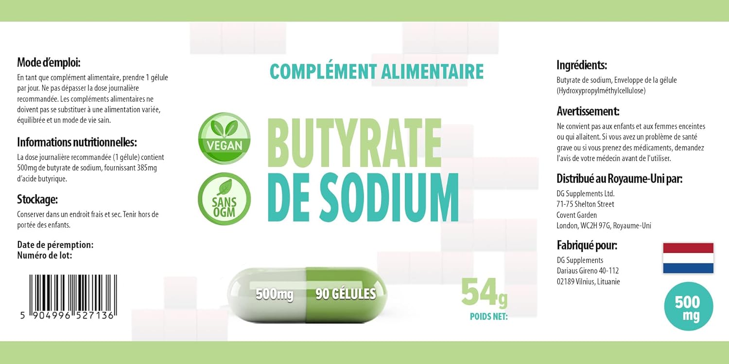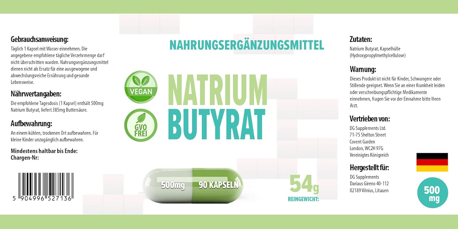 About The Product : ? HIGH-STRENGTH SODIUM BUTYRATE 500MG β Each capsule delivers 500mg of Sodium Butyrate, providing 385mg of Butyric Acid for optimal gut and digestive support