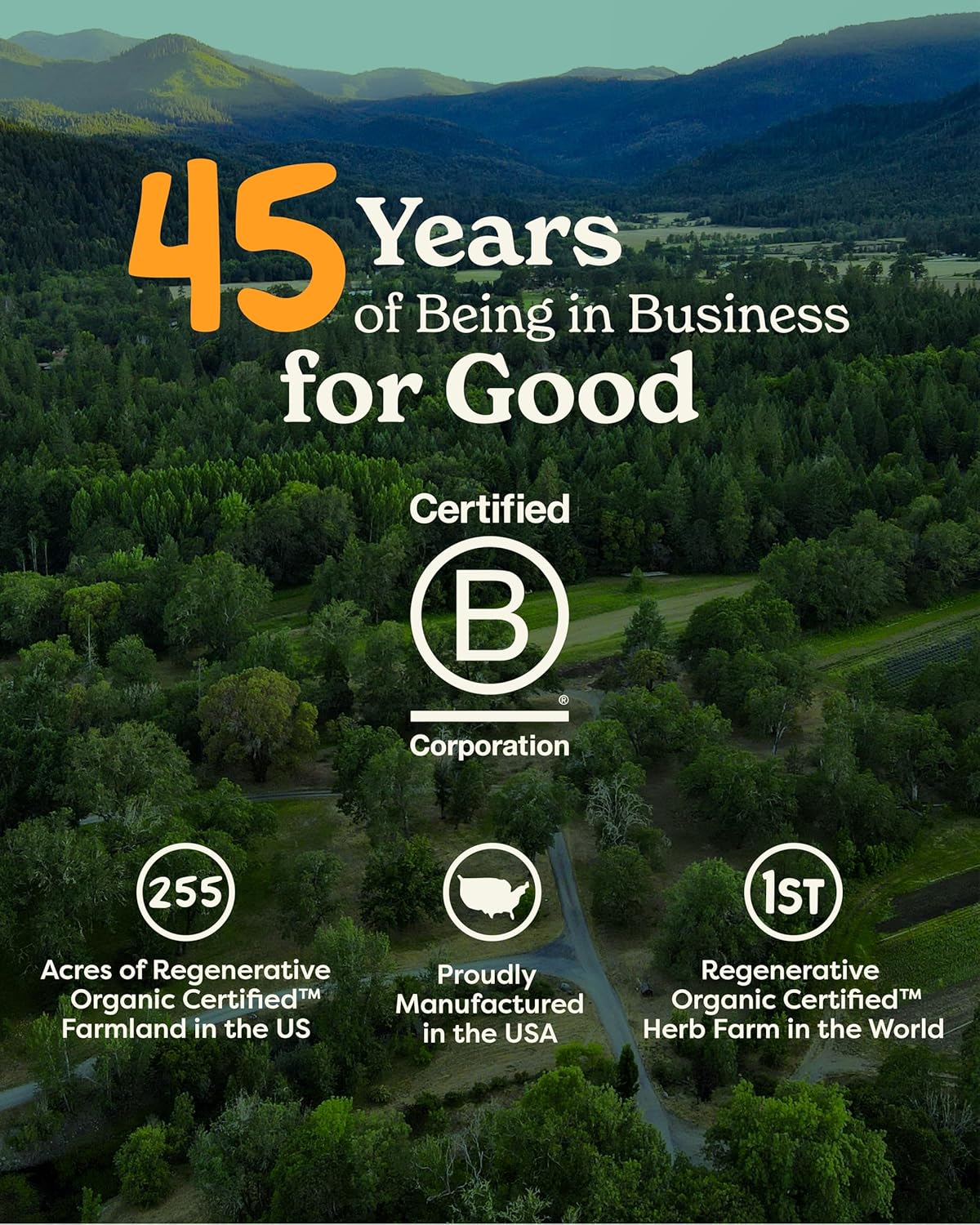 COMMITTED TO QUALITY: We sell ~4 million herbalist-crafted products annually and have been in business for 45+ years! We’re also the world’s 1st Regenerative Organic Certified herb farm