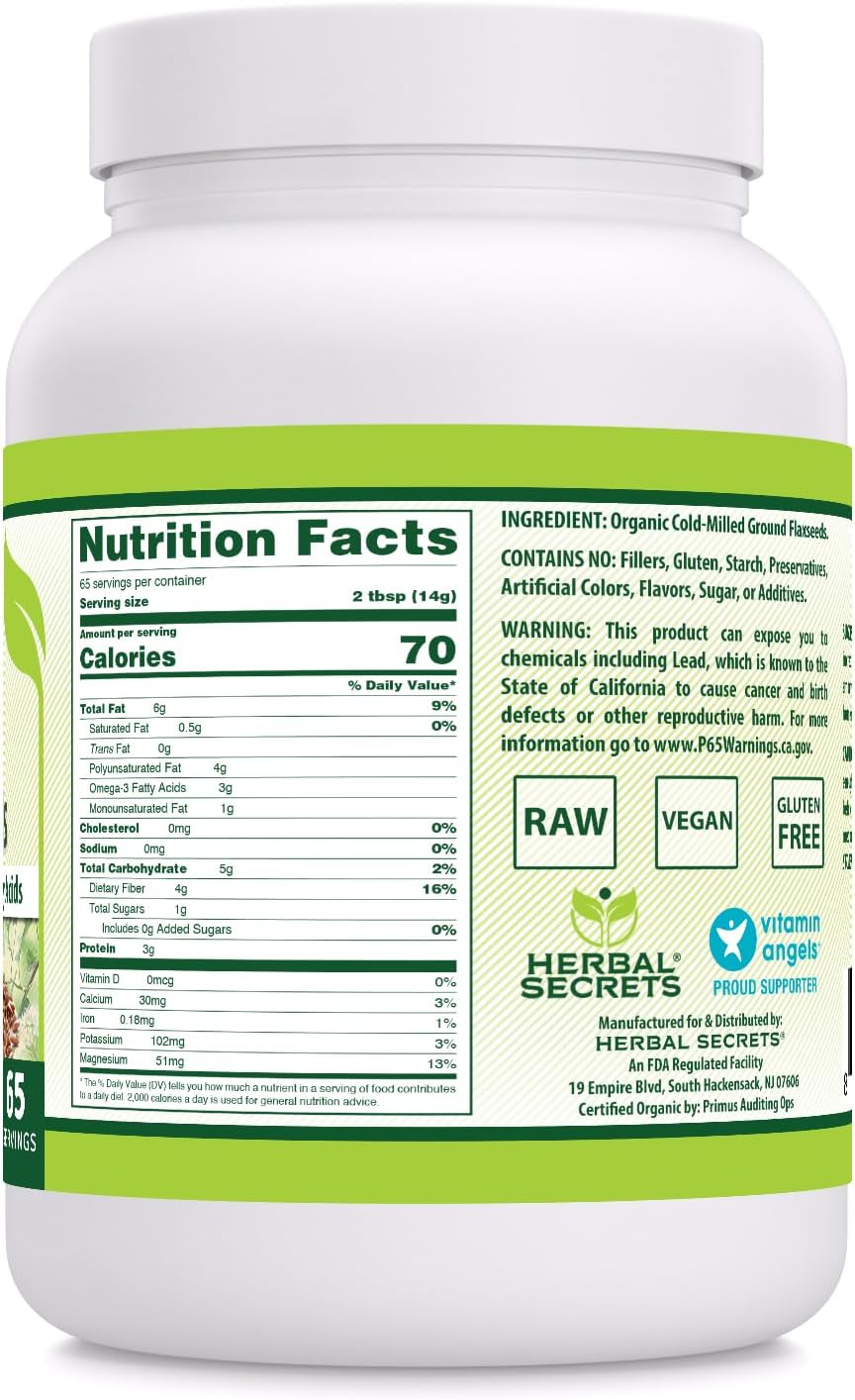 Herbal Secrets Usda Organic Ground Flaxseeds 2 Lbs Powder | 14 Grams Per Serving | 65 Servings | Excellent Vegan Source Of Fiber & Omega -3 Fatty Acids | Non-Gmo (2 Lb | 1 Pack)