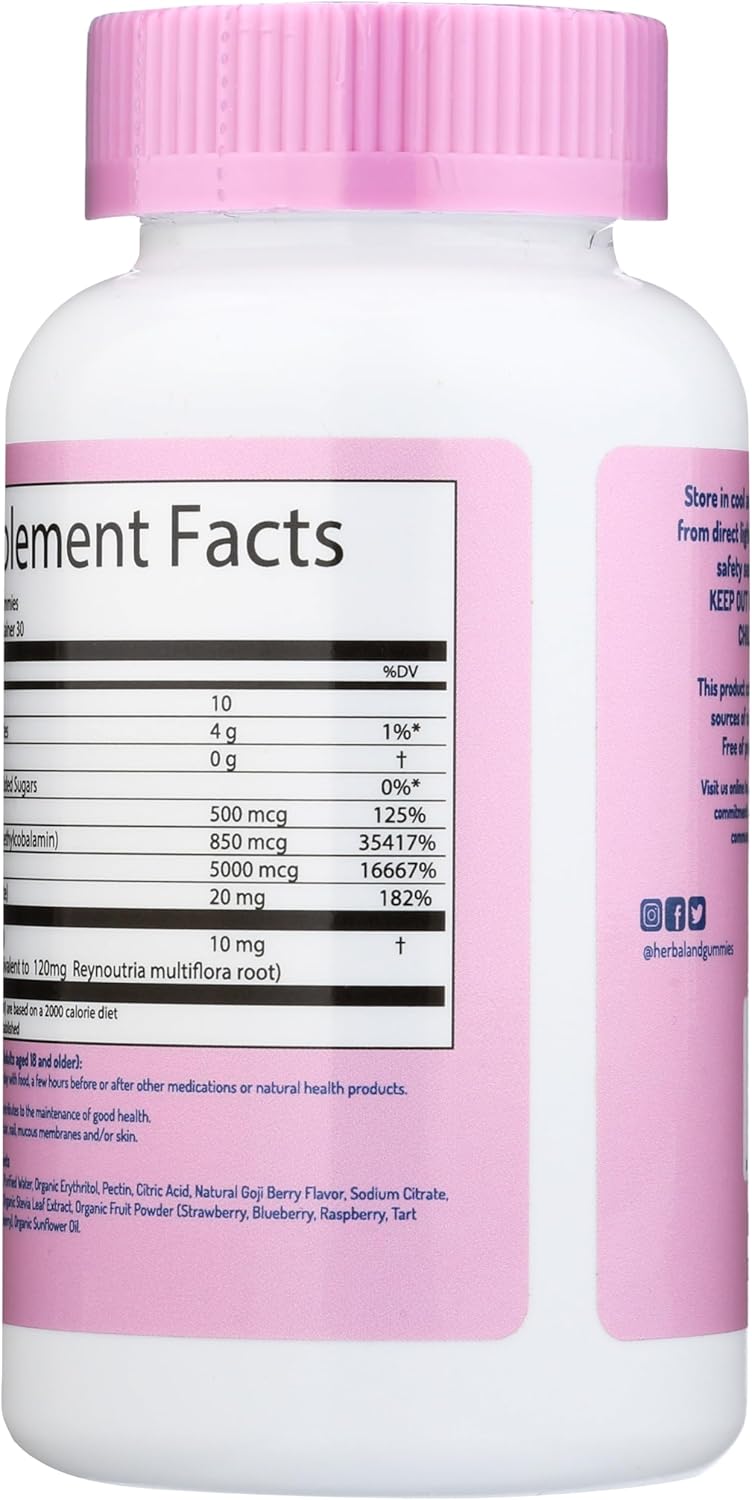 About this item Helps improve hair, skin and nail strength - Helps improve nail strength, support naturally glowing and radiant skin, and maintain shiny hair with the help of natural ingredients. Source of biotin, folic Acid and zinc, and vitamin B12 - These nutritious biotin gummies are expertly formulated with the best nutrients to help with your hair, skin, and nails. The ideal way to take your vitamins – Our biotin beauty gummies taste great and are easy to chew and swallow! You'll love the unique and natural goji berry flavor! Sustainable - One of our core values is sustainability. By using compostable packaging and eco-forming technology to deposit our gummies into steel molds, this makes Herbaland one of the greenest manufacturers in Canada! Health inclusive - All of our vitamin gummy products are certified plant-based, sugar-free, non-GMO, gluten-free, peanut-free, soy-free, and proudly made in Canada! See more product details,Helps improve hair, skin and nail strength - Helps improve nail strength, support naturally glowing and radiant skin, and maintain shiny hair with the help of natural ingredients,Source of biotin, folic Acid and zinc, and vitamin B12 - These nutritious biotin gummies are expertly formulated with the best nutrients to help with your hair, skin, and nails,The ideal way to take your vitamins – Our biotin beauty gummies taste great and are easy to chew and swallow! You'll love the unique and natural goji berry flavor!,Sustainable - One of our core values is sustainability. By using compostable packaging and eco-forming technology to deposit our gummies into steel molds, this makes Herbaland one of the greenest manufacturers in Canada!,Health inclusive - All of our vitamin gummy products are certified plant-based, sugar-free, non-GMO, gluten-free, peanut-free, soy-free, and proudly made in Canada!