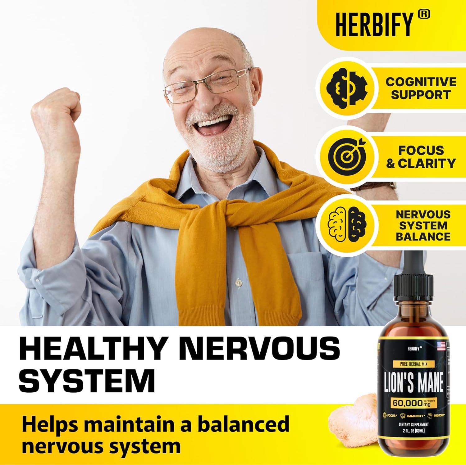 About this item Lions Mane Extract: Lions mane mushroom liquid extract is an brain booster that helps improve focus, memory clarity, creativity, and mood. Lion's Mane Drops also encourages immune system and key to maintaining healthy nerve cells. Pure and Safe: We used only real and high quality wild ingredients to make our lion's mane tincture. Lions Mane extract with an easy-to-use glass dropper will enhance your daily life. Manage your gut health, boost immunity and increase energy levels. Effective and Better: Taking Lions Mane in a liquid form is more effective than taking powder. As a superfood, lions mane does wonders for your wellness. This lions mane extract is loaded with antioxidants that promote a strong immune response versus stressors. Superior Quality: Herbify Lions Mane Mushroom Extract is made in the USA with a lot of pride. We are based in Florida and use American ingredients as much as possible. We at Herbify have strict quality control, check our sources, and value Love & Trust for our brand above everything else. Unhappy with our product Reach Out Directly to Make It Right! - If our product falls short of your expectations, please contact us directly for a prompt solution. Ensuring your satisfaction is our highest priority. With us, enjoy a seamless shopping experience where your health and well-being are of utmost importance. Should the anticipated benefits not materialize, our hassle-free return policy, complementing Amazonās A-to-z Guarantee, offers a straightforward money-back process. See more product details,Lions Mane Extract: Lions mane mushroom liquid extract is an brain booster that helps improve focus, memory clarity, creativity, and mood. Lion's Mane Drops also encourages immune system and key to maintaining healthy nerve cells,Pure and Safe: We used only real and high quality wild ingredients to make our lion's mane tincture. Lions Mane extract with an easy-to-use glass dropper will enhance your daily life. Manage your gut health, boost immunity and increase energy levels,Effective and Better: Taking Lions Mane in a liquid form is more effective than taking powder. As a superfood, lions mane does wonders for your wellness. This lions mane extract is loaded with antioxidants that promote a strong immune response versus stressors,Superior Quality: Herbify Lions Mane Mushroom Extract is made in the USA with a lot of pride. We are based in Florida and use American ingredients as much as possible. We at Herbify have strict quality control, check our sources, and value Love & Trust for our brand above everything else,Unhappy with our product Reach Out Directly to Make It Right! - If our product falls short of your expectations, please contact us directly for a prompt solution. Ensuring your satisfaction is our highest priority. With us, enjoy a seamless shopping experience where your health and well-being are of utmost importance. Should the anticipated benefits not materialize, our hassle-free return policy, complementing Amazonās A-to-z Guarantee, offers a straightforward money-back process