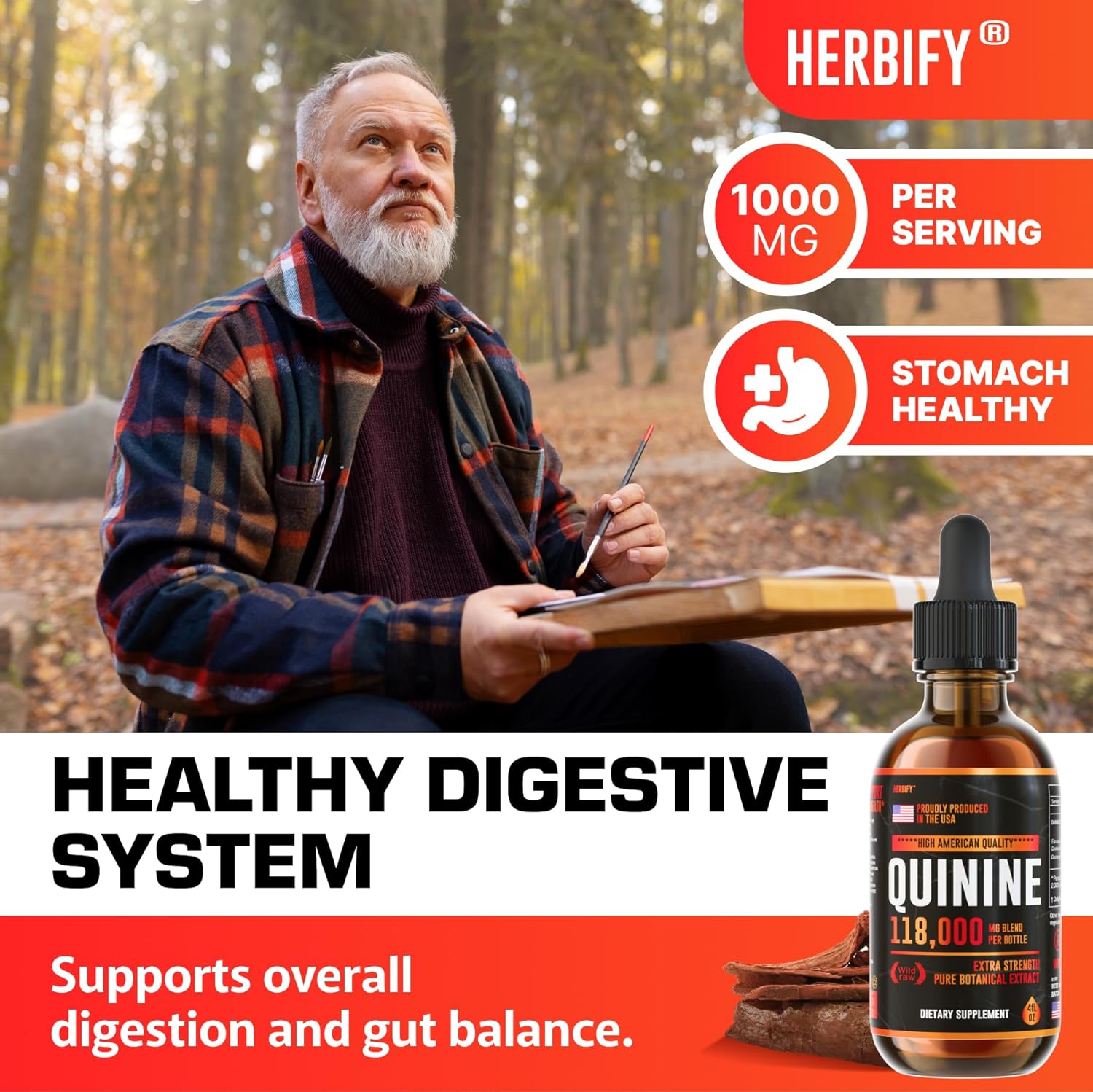 About this item Fast Absorbing Quinine Supplement. This liquid extract of wild red cinchona tree bark provides support for your immunity. Herbify liquid quinine drops have the highest absorption rate, hence it works faster. Quinine Tincture improve your digestion and soothe a bloated stomach with a natural extract. Herbify quinine drops supplement is made from 2 types of high quality cinchona bark - Cinchona Succirubra and Officinalis. Pure Concentrated Quinine will help you maintain health of your nervous system. This natural supplement is known to improve your overall well-being and supply your body with essential nutrients. Herbify is made in the USA with a lot of pride. We are based in Florida and use American ingredients as much as possible. We at Herbify have strict quality control, check our sources, and value Love & Trust for our brand above everything else. Unhappy with our product Reach Out Directly to Make It Right! - If our product falls short of your expectations, please contact us directly for a prompt solution. Ensuring your satisfaction is our highest priority. With us, enjoy a seamless shopping experience where your health and well-being are of utmost importance. Should the anticipated benefits not materialize, our hassle-free return policy, complementing Amazon’s A-to-z Guarantee, offers a straightforward money-back process. See more product details,Fast Absorbing Quinine Supplement. This liquid extract of wild red cinchona tree bark provides support for your immunity. Herbify liquid quinine drops have the highest absorption rate, hence it works faster,Quinine Tincture improve your digestion and soothe a bloated stomach with a natural extract. Herbify quinine drops supplement is made from 2 types of high quality cinchona bark - Cinchona Succirubra and Officinalis,Pure Concentrated Quinine will help you maintain health of your nervous system. This natural supplement is known to improve your overall well-being and supply your body with essential nutrients,Herbify is made in the USA with a lot of pride. We are based in Florida and use American ingredients as much as possible. We at Herbify have strict quality control, check our sources, and value Love & Trust for our brand above everything else,Unhappy with our product Reach Out Directly to Make It Right! - If our product falls short of your expectations, please contact us directly for a prompt solution. Ensuring your satisfaction is our highest priority. With us, enjoy a seamless shopping experience where your health and well-being are of utmost importance. Should the anticipated benefits not materialize, our hassle-free return policy, complementing Amazon’s A-to-z Guarantee, offers a straightforward money-back process