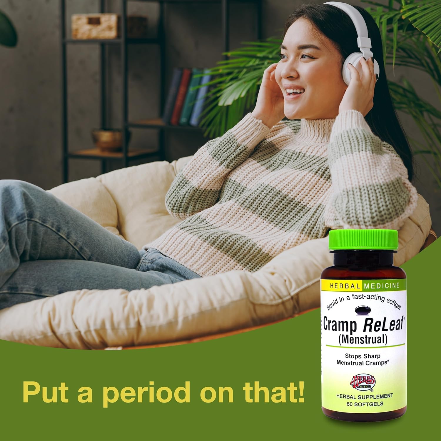 About this item Cramp ReLeaf Supplement: Cramp ReLeaf is an herbal supplement that's crafted to support your menstrual health and aid abdominal muscle relief caused by menstrual cramps Herbal Menstrual Support: This menstrual cramp support supplement aids against discomfort commonly felt throughout your period Sharp Menstrual Cramp Support: This herbal supplement is formulated with black haw, cramp bark, and bethroot for natural menstrual health and comfort support Dosage for Women's Health Supplement: To support menstrual cramps, take one softgel with water every three to four hours; increase the suggested use to two softgels with water for additional support About Herbs, Etc.: We use the right herbs and the right processes to make the right herbal formulations that support your health needs See more product details,Cramp ReLeaf Supplement: Cramp ReLeaf is an herbal supplement that's crafted to support your menstrual health and aid abdominal muscle relief caused by menstrual cramps,Herbal Menstrual Support: This menstrual cramp support supplement aids against discomfort commonly felt throughout your period,Sharp Menstrual Cramp Support: This herbal supplement is formulated with black haw, cramp bark, and bethroot for natural menstrual health and comfort support,Dosage for Women's Health Supplement: To support menstrual cramps, take one softgel with water every three to four hours; increase the suggested use to two softgels with water for additional support,About Herbs, Etc.: We use the right herbs and the right processes to make the right herbal formulations that support your health needs