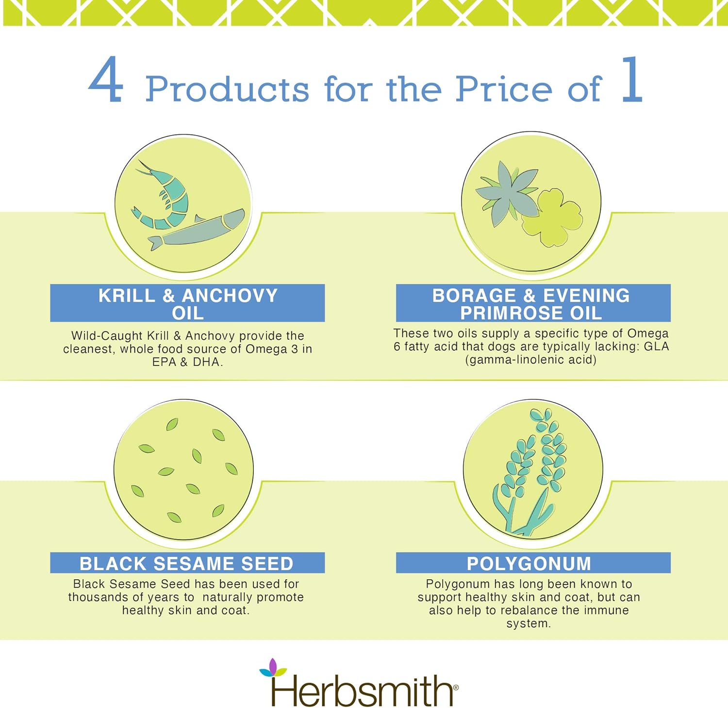 Herbsmith Glimmer - Dog Healthy Skin And Coat + Dog Treatment For Dry Itchy Skin - Omega-3 Supplement For Dogs - 60Ct Small Chews