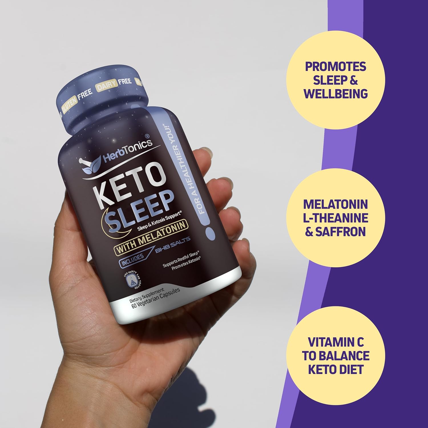 Herbtonics Keto Sleep – Night-Time Ketone & Sleep Support | Melatonin 5 Mg + Bhb Salts | Helps Maintain Ketosis & Promote Restful Sleep | 60 Veg Caps
