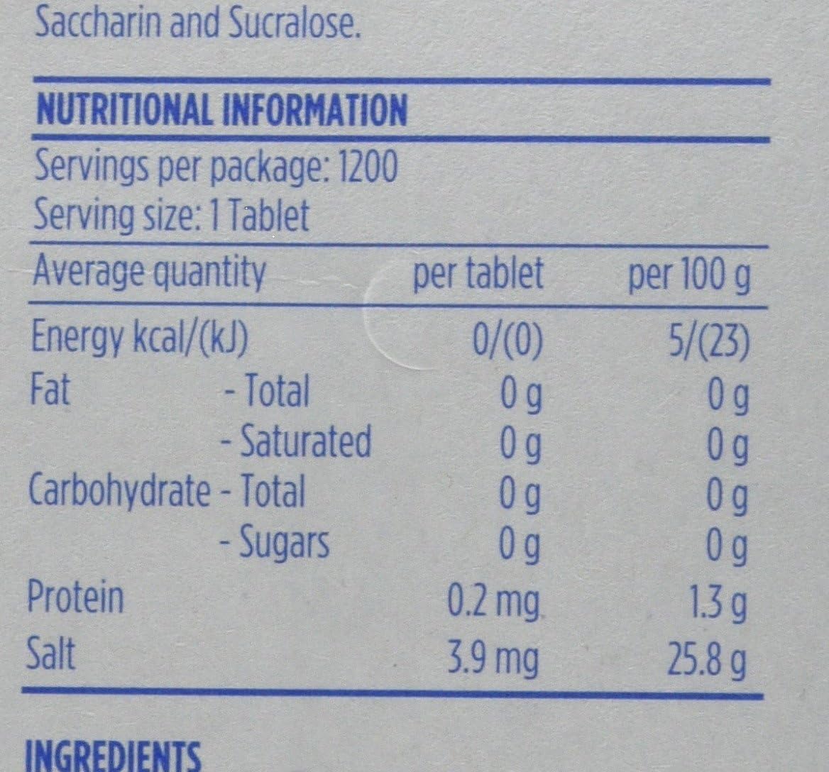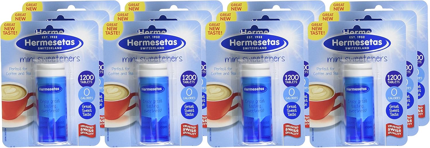 Product description Hermesetas Mini Sweeteners 1200 X 6 Packs By Hermesetas Ingredients ?INGREDIENTS: ?Sweetener Sodium Saccharin,Hermesetas Mini Sweeteners 1200 x 6 Packs,Brand : Hermesetas,Product type: SUGAR SUBSTITUTE,1200 Count Pack of 6,sugar