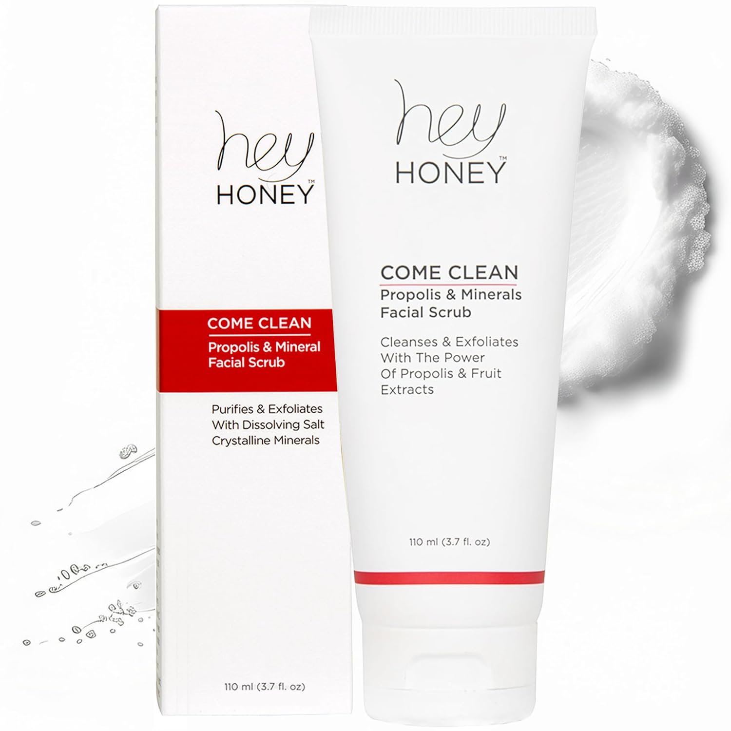 Hey Honey, Come Clean Propolis & Mineral Facial Scrub. Rich, Exfoliating, Dead Sea Salt Scrub Designed To Be Gentle Enough For Even The Most Sensitive Skin. 110Ml