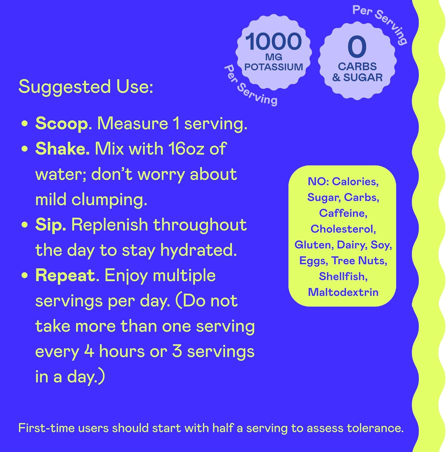About this item 1000MG POTASSIUM + SUPPORTIVE MINERALS PER SCOOP - Hi-Lyte K1000 delivers 1000 mg of potassium along with calcium, magnesium, and a full trace mineral complex to help support hydration, cramp relief, and electrolyte balance-especially important on low-carb or active days. KETO ELECTROLYTE DRINK WITH NO SUGAR OR CARBS - Stay on track with your goals. This zero-sugar, zero-carb electrolyte powder is sweetened with stevia and flavored naturally. No maltodextrin, fillers, or artificial ingredients-just clean support when you need it most. SUPPORTS HYDRATION, MUSCLE RECOVERY & KETO COMFORT - Designed for keto flu support, cramp recovery, and electrolyte replacement, this formula helps you feel more steady when fasting, training, or sweating. Ideal for daily use or when extra replenishment is needed. EASY TO USE WITH SAFE DAILY GUIDANCE - Mix 1 scoop with 16 oz of water. Use up to 3 servings per day. Do not take more than one serving every 4 hours or 3 servings in a day. First-time users should start with half a serving to assess tolerance. Flexible for your schedule-whether you're lifting, commuting, or on the go. HIGH QUALITY WITH CLEAN INGREDIENTS - Hi-Lyte K1000 is blended in the USA and made with keto, vegan, and gluten-free lifestyles in mind. No artificial sweeteners or unnecessary additives-just a focused, functional powder designed to help you feel your best. See more product details,1000MG POTASSIUM + SUPPORTIVE MINERALS PER SCOOP - Hi-Lyte K1000 delivers 1000 mg of potassium along with calcium, magnesium, and a full trace mineral complex to help support hydration, cramp relief, and electrolyte balance-especially important on low-carb or active days,KETO ELECTROLYTE DRINK WITH NO SUGAR OR CARBS - Stay on track with your goals. This zero-sugar, zero-carb electrolyte powder is sweetened with stevia and flavored naturally. No maltodextrin, fillers, or artificial ingredients-just clean support when you need it most,SUPPORTS HYDRATION, MUSCLE RECOVERY & KETO COMFORT - Designed for keto flu support, cramp recovery, and electrolyte replacement, this formula helps you feel more steady when fasting, training, or sweating. Ideal for daily use or when extra replenishment is needed,EASY TO USE WITH SAFE DAILY GUIDANCE - Mix 1 scoop with 16 oz of water. Use up to 3 servings per day. Do not take more than one serving every 4 hours or 3 servings in a day. First-time users should start with half a serving to assess tolerance. Flexible for your schedule-whether you're lifting, commuting, or on the go,HIGH QUALITY WITH CLEAN INGREDIENTS - Hi-Lyte K1000 is blended in the USA and made with keto, vegan, and gluten-free lifestyles in mind. No artificial sweeteners or unnecessary additives-just a focused, functional powder designed to help you feel your best