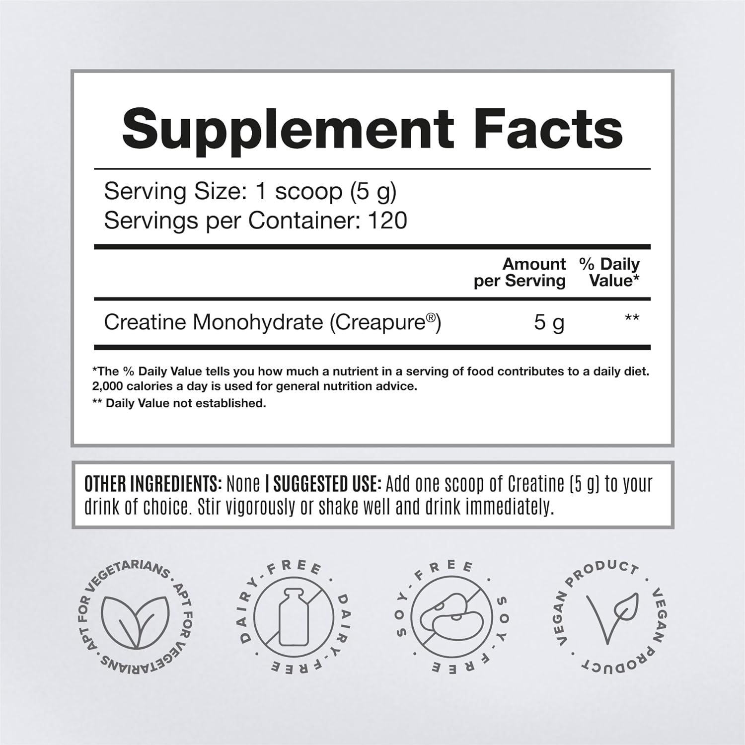 Premium Quality and High-Purity Creatine Monohydrate: Our creatine is of high purity, which guarantees that you are getting one of the best sources available on the market to complement your nutritional regimenPre or Post Workout: Designed to adapt to your needs, you can take it before to boost your performance or after training to support muscle recoveryNo add-ons: We believe in simplicity and offering pure products. That's why our creatine is free of artificial flavors and sweeteners. Enjoy a product without unwanted additivesAdd to your favorite drink: Its consistency and purity make it perfect to easily add to your smoothies or shakes, allowing you to seamlessly incorporate it into your daily routineVegan and Vegetarian Friendly: We know that everyone has their own dietary choices. Therefore, our creatine is 100% suitable for vegans and vegetarians, ensuring that everyone can enjoy its benefits