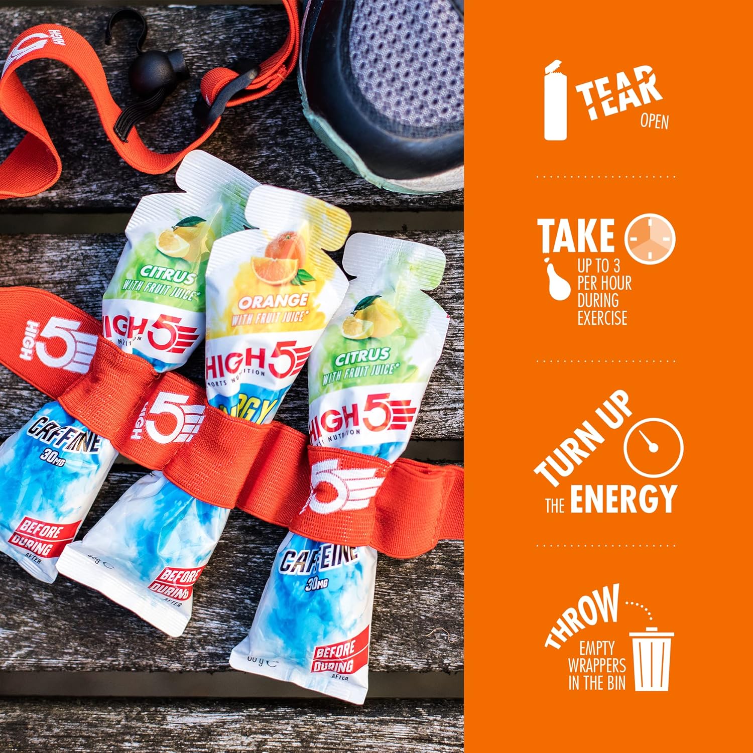 High5 Energy Gels Aqua - Quick Release Sports Gels To Power Muscles For Peak Performance - Natural Fruit Juice & Caffeine-Free - Fast Energy Boost For Running, Cycling, Endurance (Orange, 5 X 66G)
