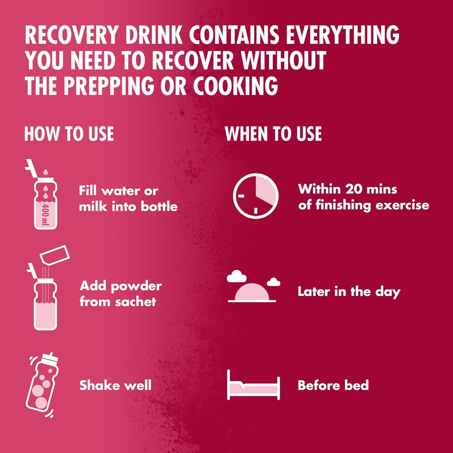 HIGH5 Recovery Drink is a delicious-tasting protein shake that promotes the recovery of normal muscle function after exercise, and contributes to the growth and maintenance of muscle mass
