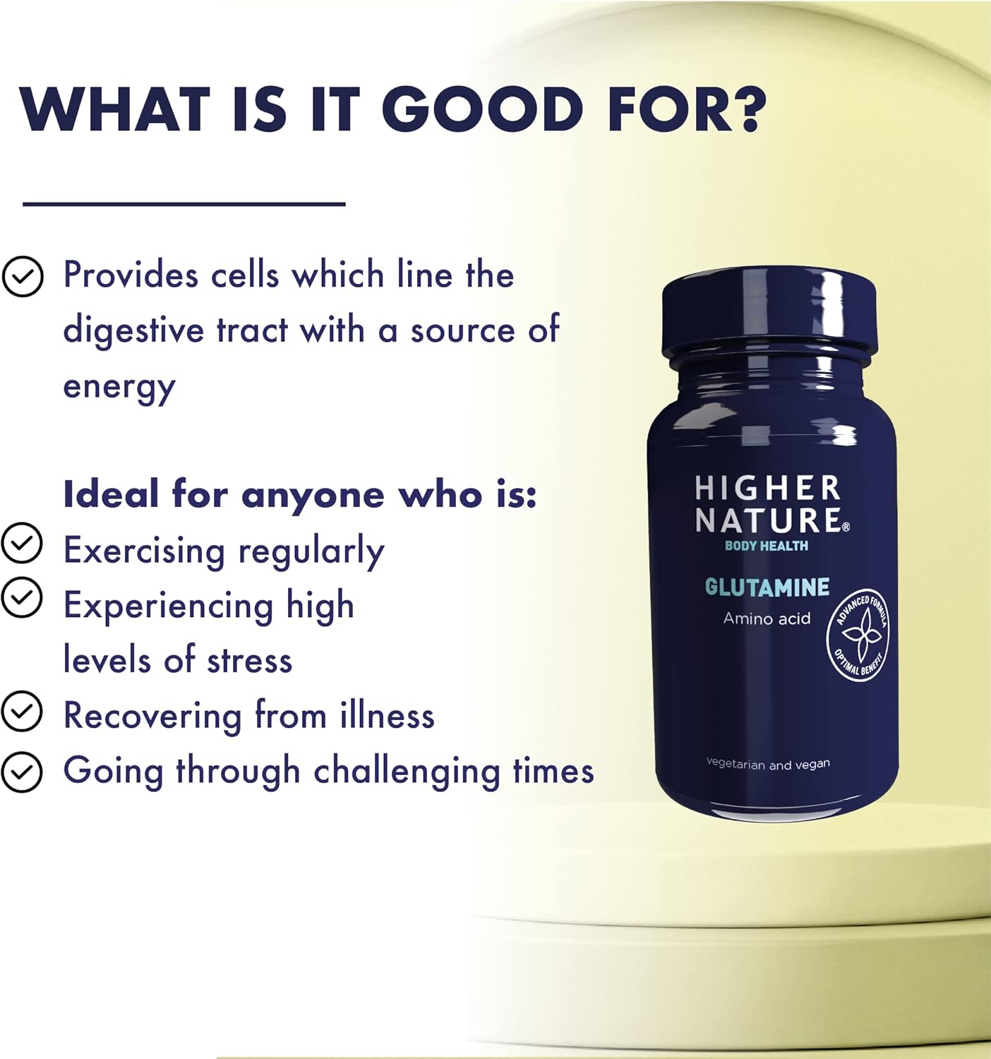 Higher Nature - Glutamine - Versatile Amino Acid - Ideal For Working Out - Supports Immune System - L Glutamine - Vegan & Vegetarian - 90 Capsules