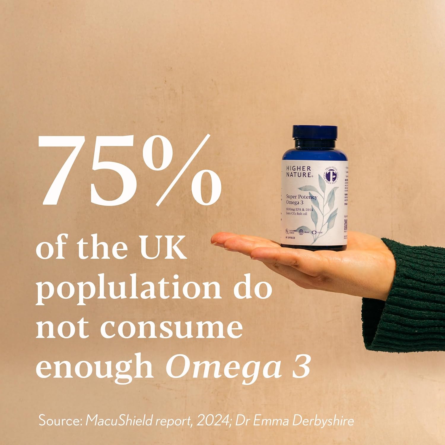 Higher Nature - Omega 3 2000Mg With 1000Mg Epa & 500Mg Dha Per Serving - Super Potency Omega 3 True Food® Formula Fish Oil Supplement - Supports Eye, Brain & Heart Health - 60 Capsules