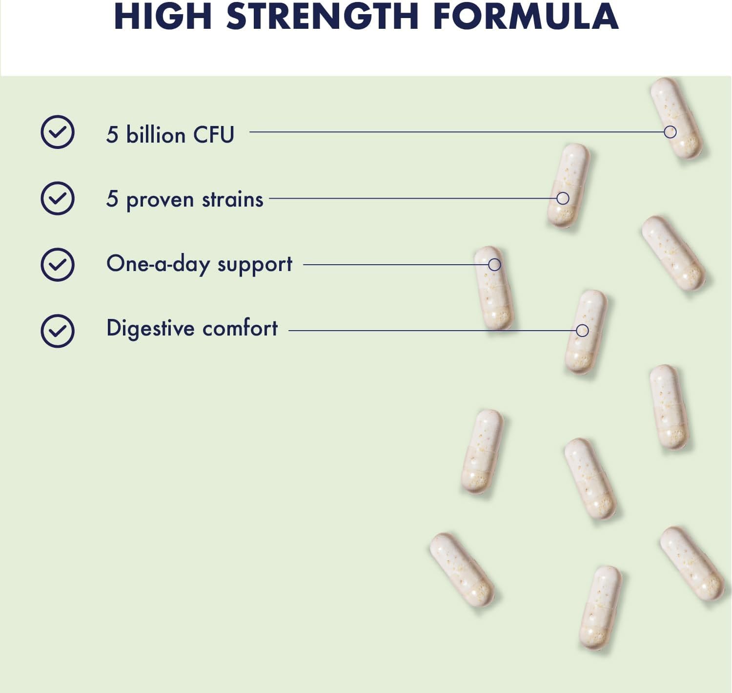 ?? ?????????????? ????????: Every day multi-strain, live bacteria supplement delivering 5 billion CFUs (colony forming units) per capsule from 5 proven strains of research-backed friendly bacteria