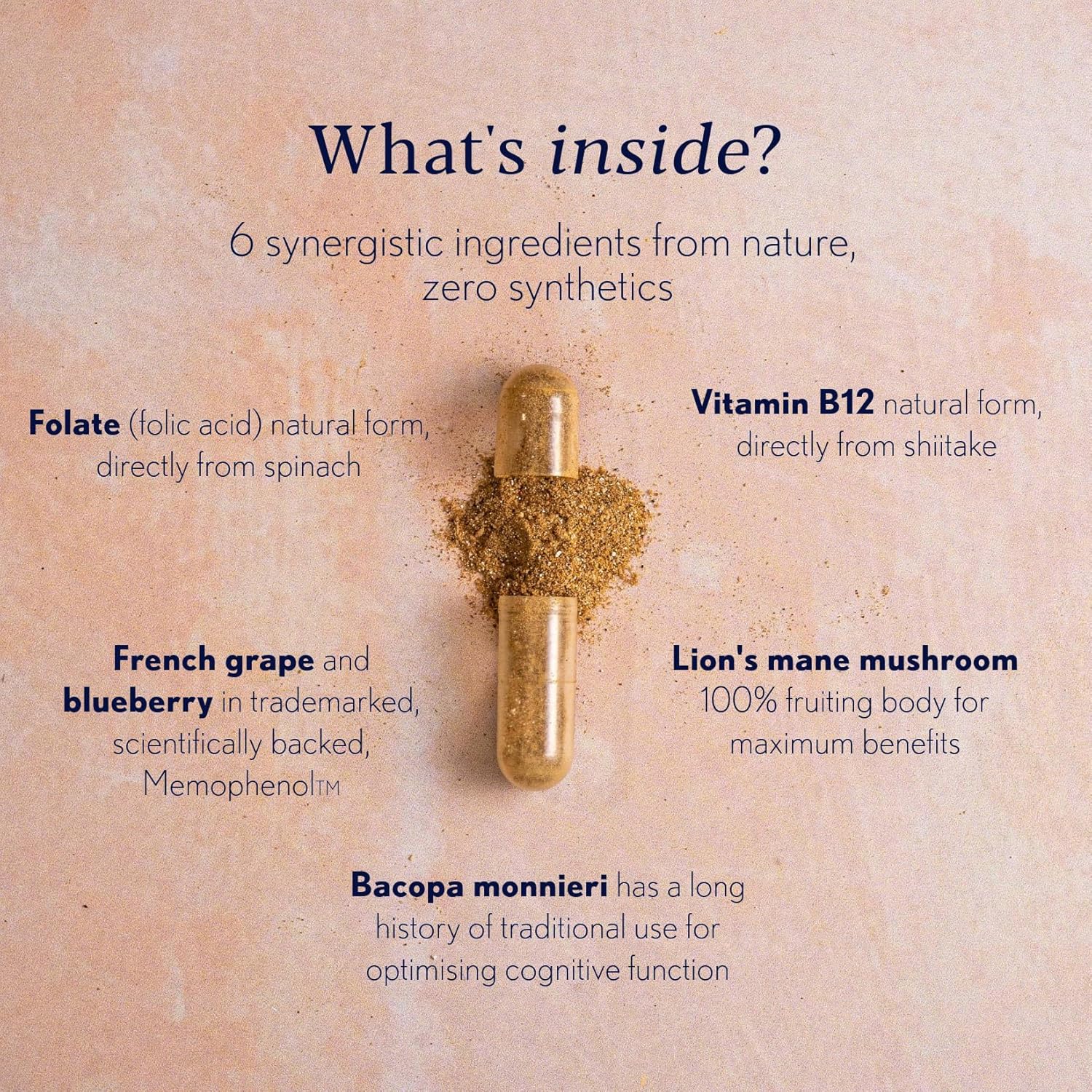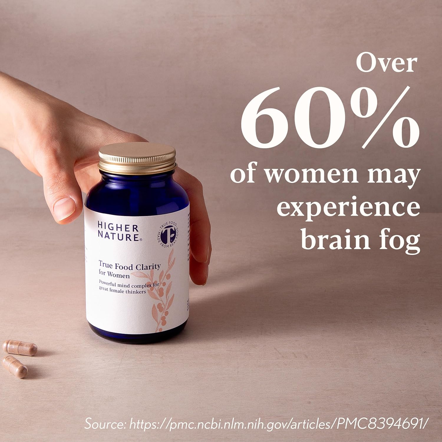 Higher Nature - True Food Clarity For Women - Nootropic - Support For Mental Clarity, Energy, Wellbeing & Cognitive Function - Lion'S Mane & Vitamin B12 - Vegan - One Month Supply - 60 Capsules