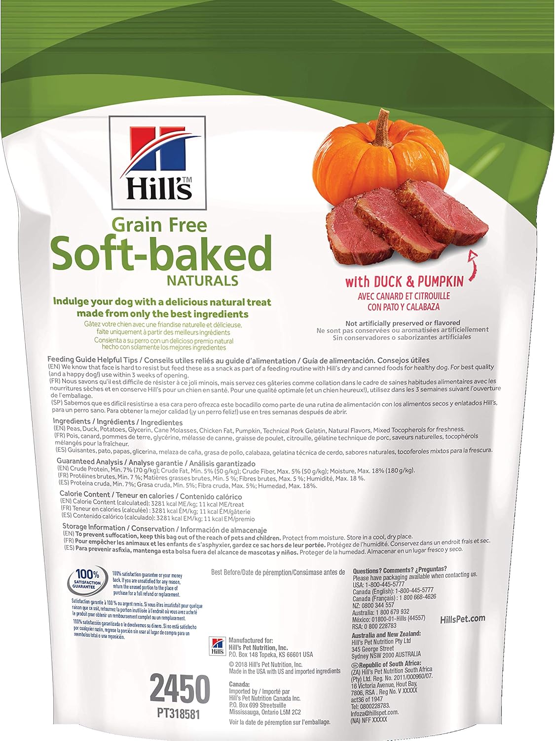 Hill'S Grain Free Soft Baked Naturals, All Life Stages, Great Taste, Dog Treats, Duck & Pumpkin , 8 Oz Bag