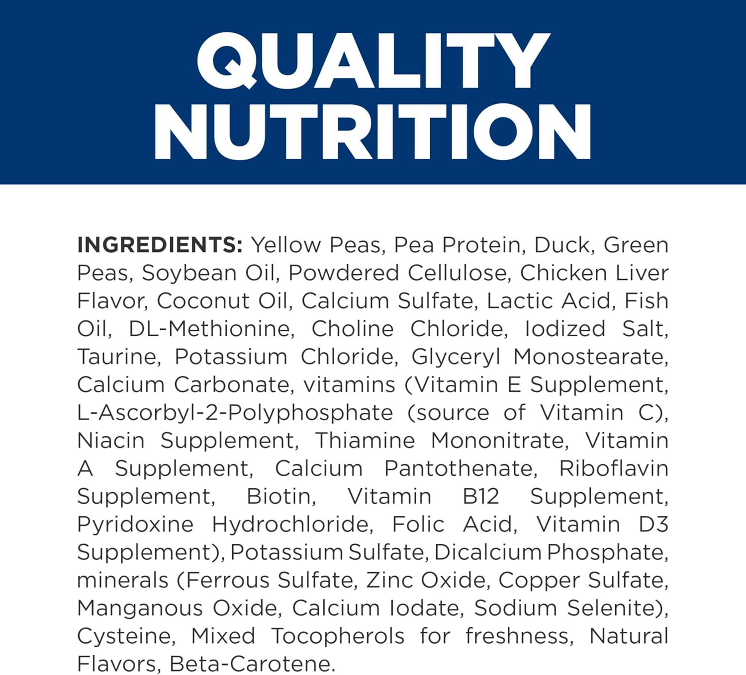 Hill'S Prescription Diet D/D Skin/Food Sensitivities Duck & Green Pea Formula Dry Cat Food Offers Clinical Nutrition Specially Formulated With Novel Protein To Help Avoid Reactions To Food In Cats. ItāS Made In The Usa With Thoughtfully Sourced Ingredients You Can Trust, And Was Developed By HillāS Nutritionists And Veterinarians. Please Consult Your Veterinarian For Further Information On How Prescription Diet Foods Can Help Your Cat Continue To Enjoy A Happy And Active Life.Ingredients: Yellow Peas, Pea Protein, Duck, Green Peas, Soybean Oil, Powdered Cellulose, Chicken Liver Flavor, Coconut Oil, Calcium Sulfate, Lactic Acid, Fish Oil, Dl-Methionine, Choline Chloride, Iodized Salt, Taurine, Potassium Chloride, Glyceryl Monostearate, Calcium Carbonate, Vitamins (Vitamin E Supplement, L-Ascorbyl-2-Polyphosphate (Source Of Vitamin C), Niacin Supplement, Thiamine Mononitrate, Vitamin A Supplement, Calcium Pantothenate, Riboflavin Supplement, Biotin, Vitamin B12 Supplement, Pyridoxine Hydrochloride, Folic Acid, Vitamin D3 Supplement), Potassium Sulfate, Dicalcium Phosphate, Minerals (Ferrous Sulfate, Zinc Oxide, Copper Sulfate, Manganous Oxide, Calcium Iodate, Sodium Selenite), Cysteine, Mixed Tocopherols For Freshness, Natural Flavors, Beta-Carotene