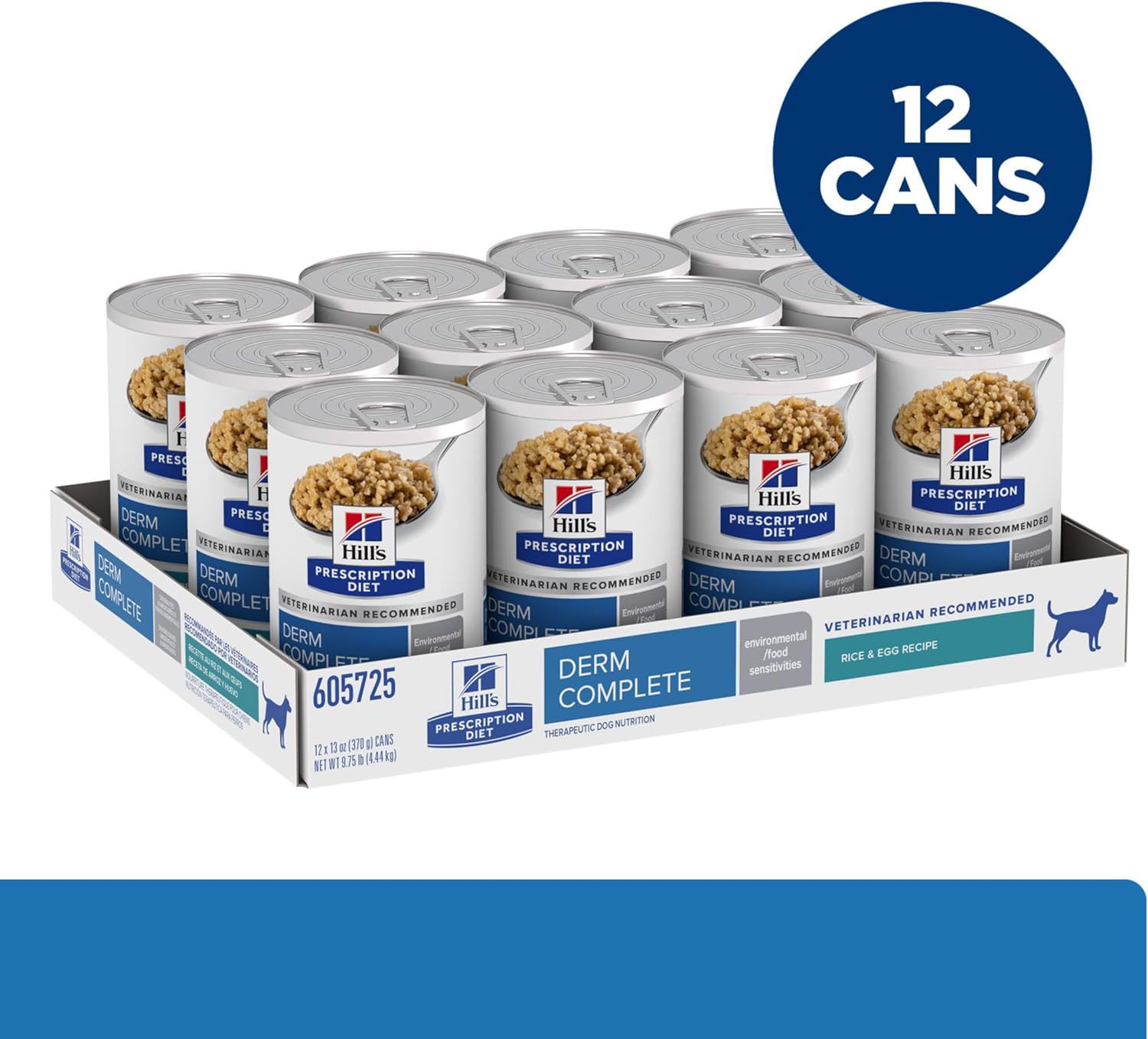 Hill'S Prescription Diet Derm Complete Rice & Egg Recipe Wet Dog Food, Veterinary Diet, 13 Oz. Cans, 12-Pack