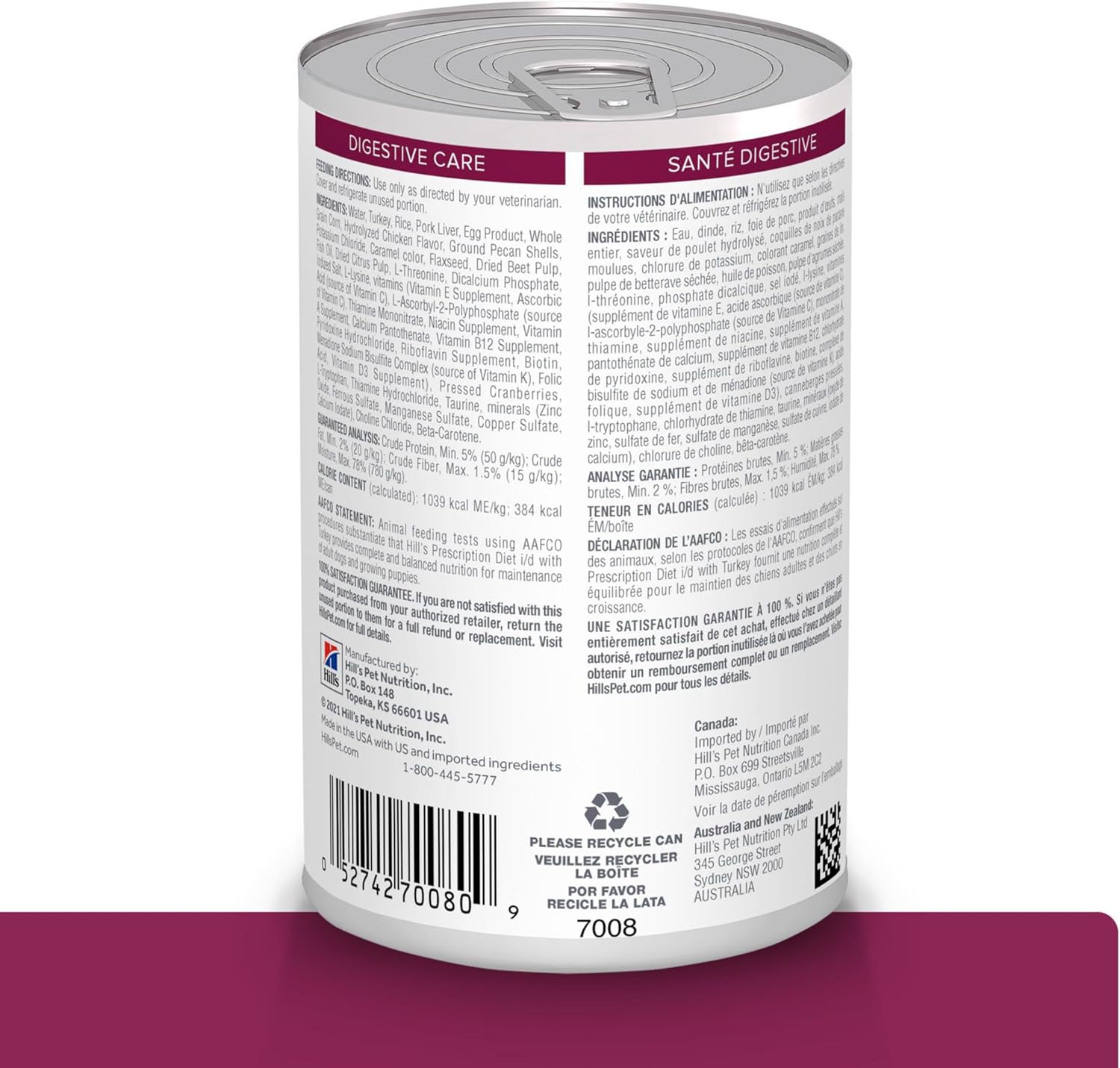 Hill'S Prescription Diet I/D Digestive Care With Turkey Canned Dog Food Is Specially Formulated By HillāS Nutritionists And Veterinarians To Support Your DogāS Digestive Health
