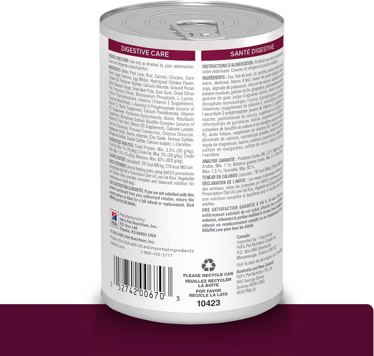 Hill'S Prescription Diet I/D Low Fat Digestive Care Rice, Vegetable & Chicken Stew Wet Dog Food, Veterinary Diet, 12.5 Ounce Cans (Pack Of 12)