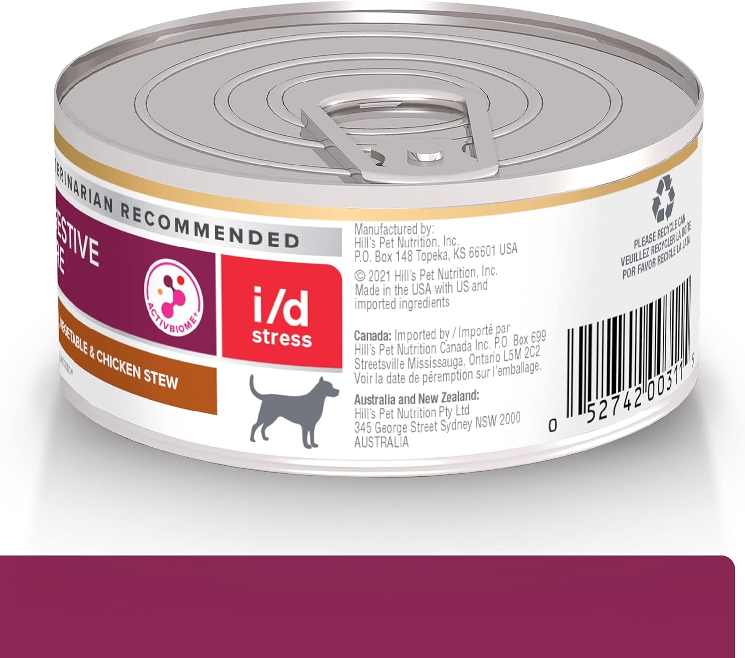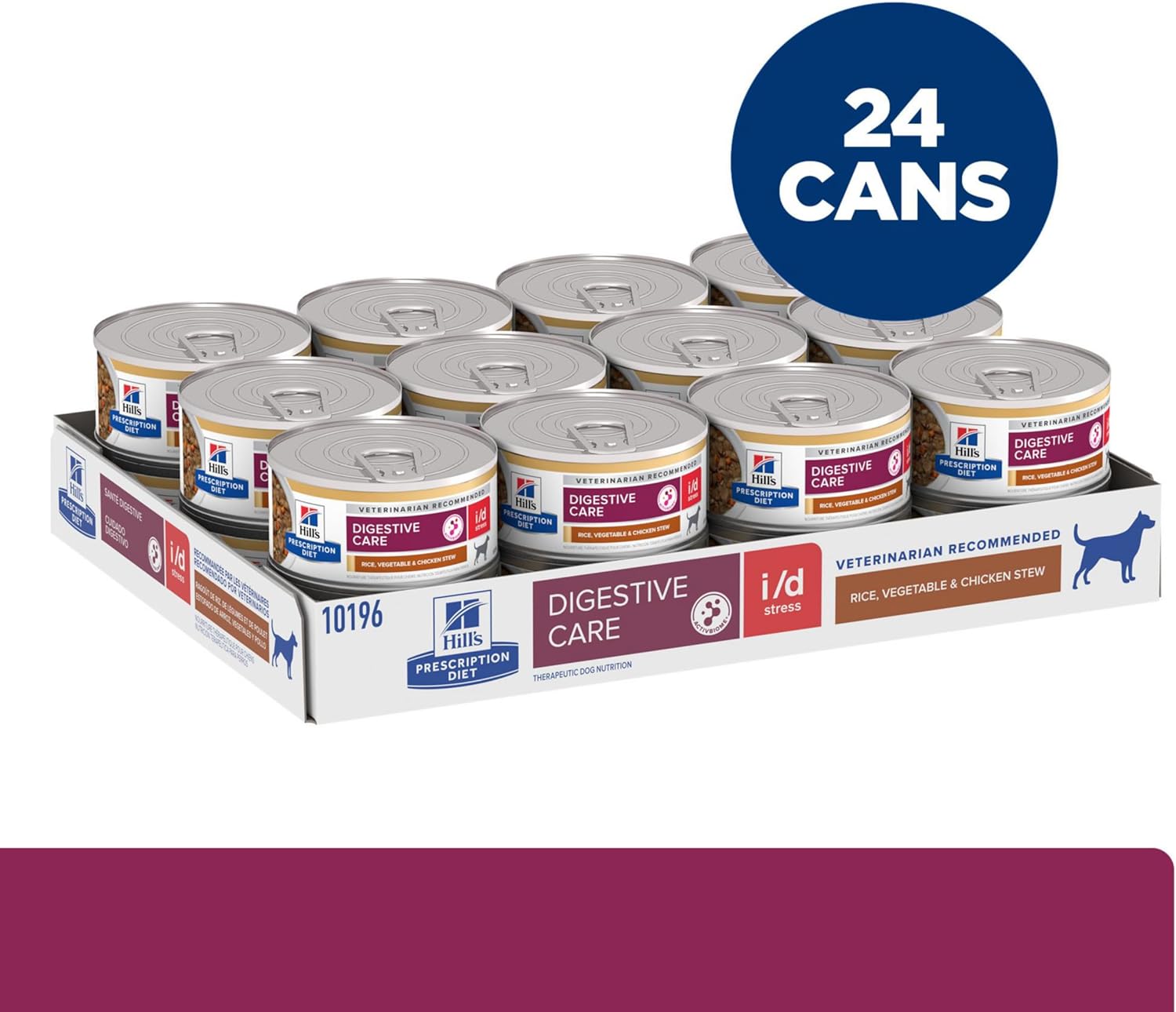 Hill'S Prescription Diet I/D Stress Digestive Care Rice, Vegetable & Chicken Stew Wet Dog Food, Veterinary Diet, 5.5 Oz. Cans, 24-Pack