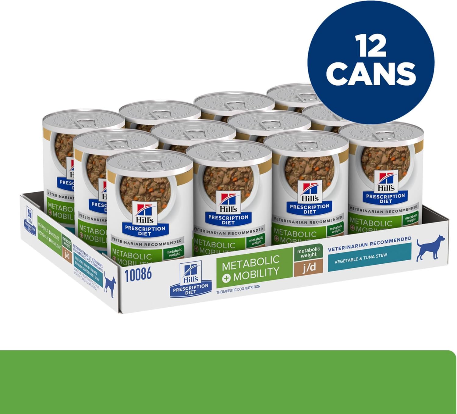 Hill'S Prescription Diet Metabolic + Mobility, Weight + J/D Joint Care Vegetable & Tuna Stew Wet Dog Food, Veterinary Diet, 12.5 Oz. Cans, 12-Pack