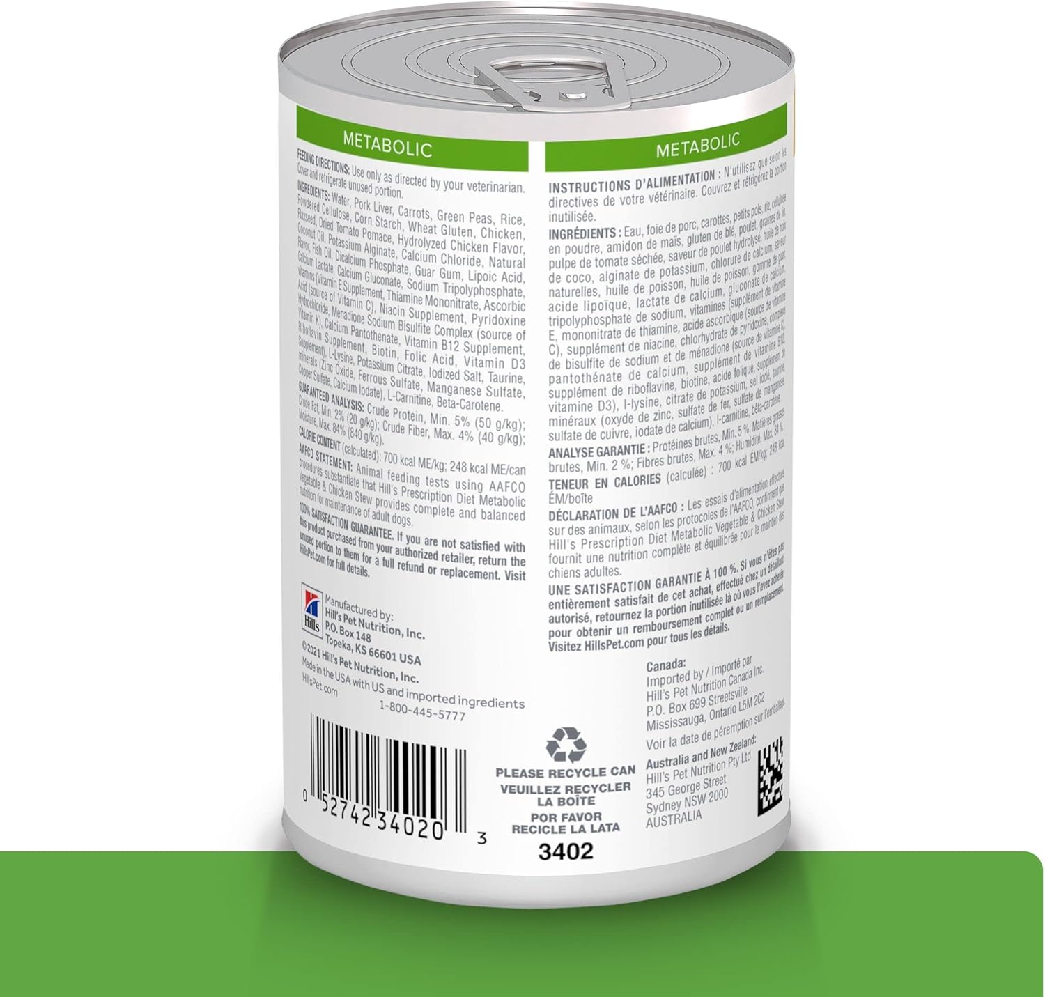 Hill'S Prescription Diet Metabolic + Mobility, Weight + Joint Care Vegetable & Tuna Stew Canned Dog Food Is Specially Formulated By HillāS Nutritionists And Veterinarians To Support Your DogāS Weight And Joint Health