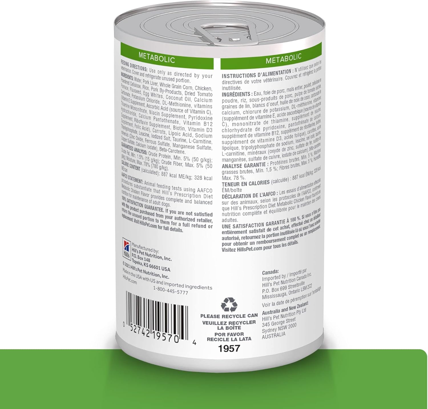 Hill'S Prescription Diet Metabolic Weight Management Chicken Flavor Canned Dog Food Clinical Nutrition Helps Dogs Lose Weight And Keep The Lost Weight Off Naturally By Activating Their Unique Metabolism