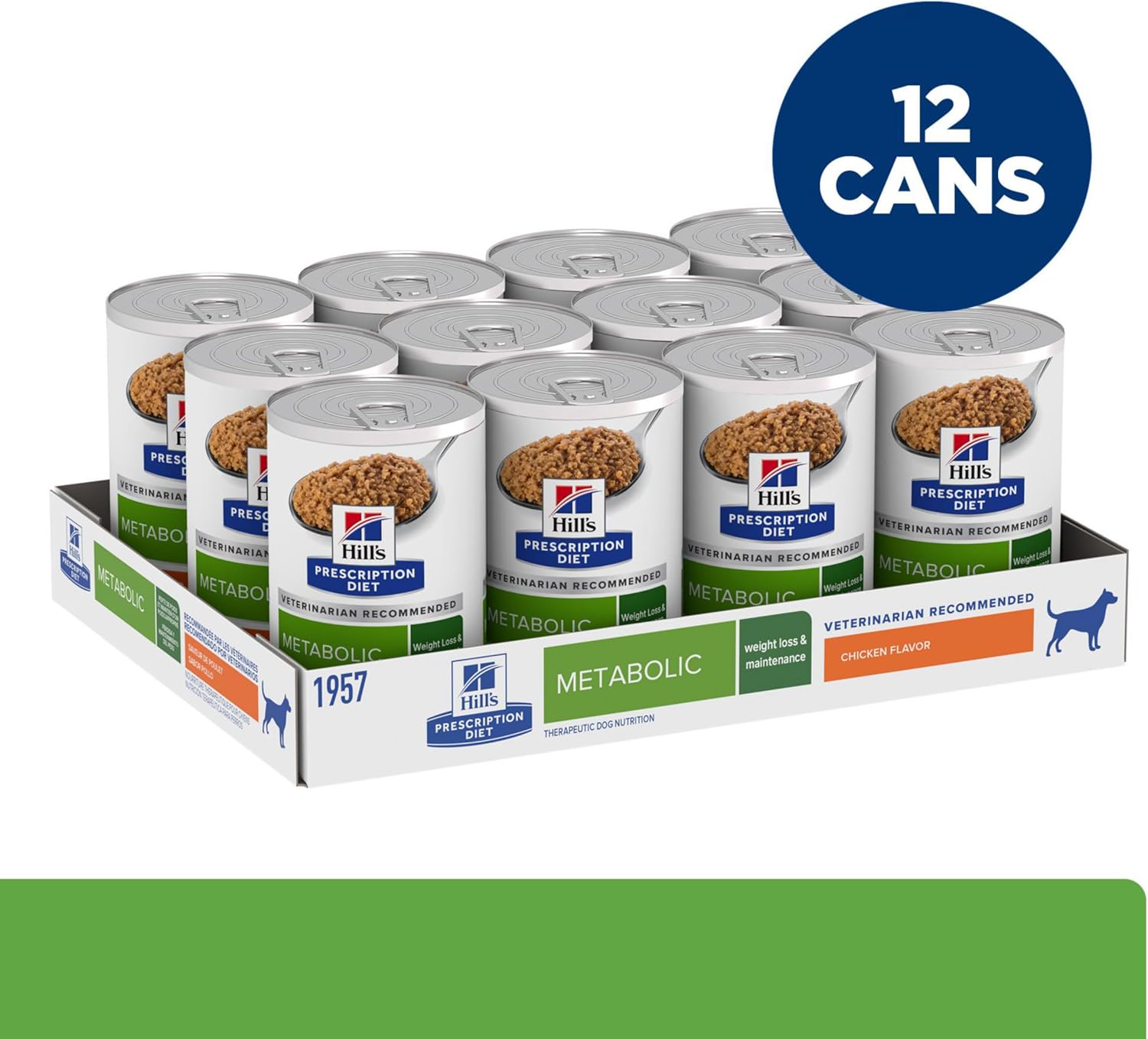Hill'S Prescription Diet Metabolic Weight Management Chicken Flavor Wet Dog Food, Veterinary Diet, 13 Oz (Pack Of 12)