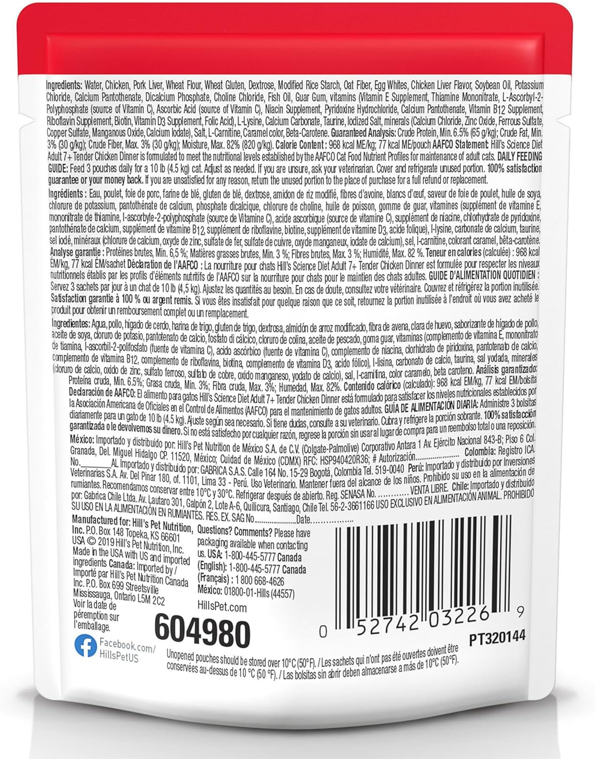 Hill'S Science Diet Adult 7+ Tender Chicken Dinner Is High-Quality, Easy-To-Digest Ingredients That Taste Exquisite To Your Mature Adult Cat'S Refined Palette