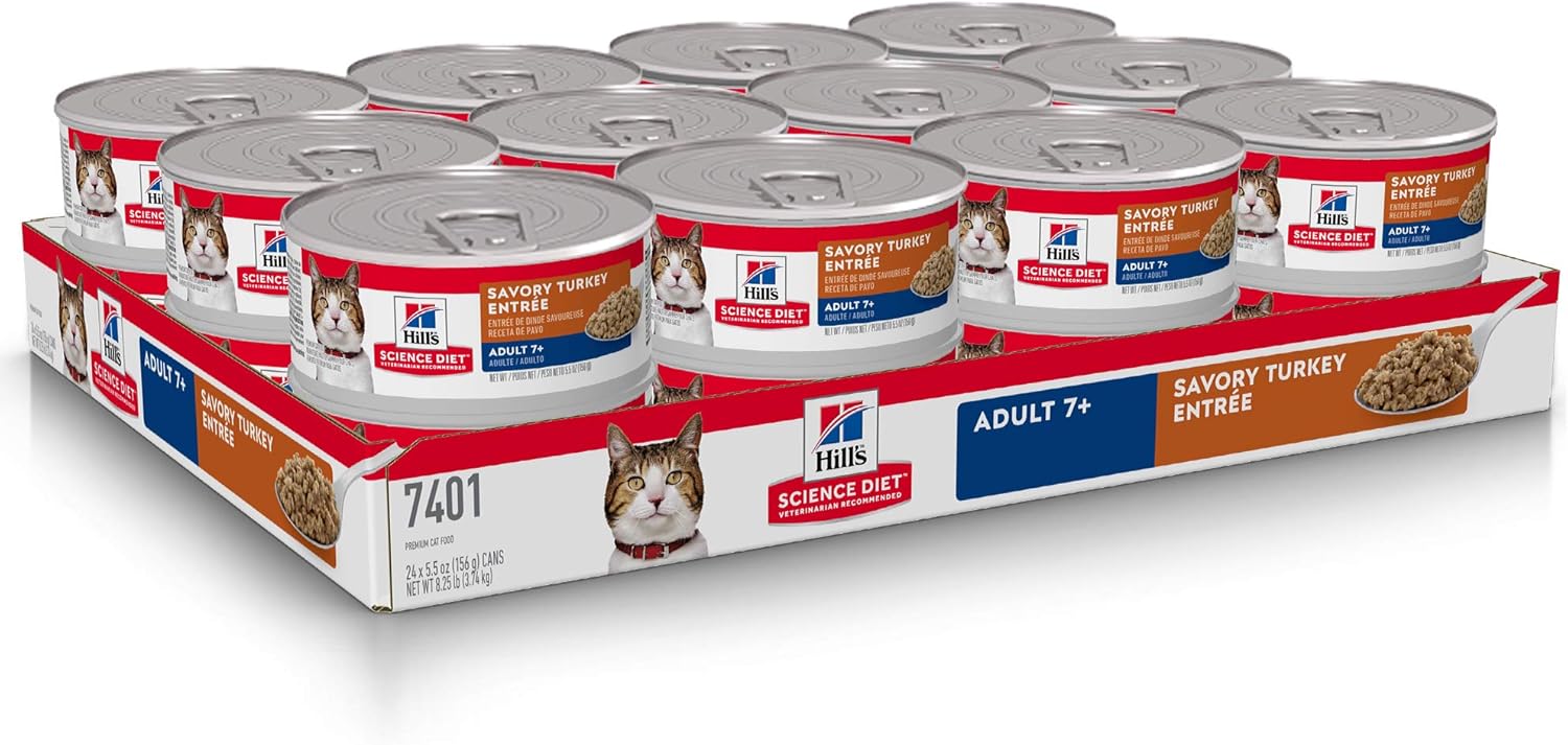 Product Description Your Cat May Be Getting Older, But The Need For Love And Interaction Doesn'T Change. Hill'S Science Diet Adult 7+ Savory Turkey Entrée Wet Cat Food Is Specially Formulated To Fuel The Energy Needs Of Aging Cats During Their Golden Years. Made With Purposeful Ingredients For A Flavorful, Nutritious Meal, This Mature Cat Food Made From Natural Ingredients Contains Quality Protein For Muscle Maintenance And Antioxidants For Lifelong Immune Support. There’S More To Love With The New Look Of Science Diet. Some Of Our Products Also Have New Names & New Formulas. From The Manufacturer Hill’S Pet Nutrition’S Mission: To Help Enrich And Lengthen The Special Relationships Between People And Their Pets. More Than 220 Veterinarians, Food Scientists, Technicians And Ph.D. Nutritionists At Hill'S Develop All Of Hill'S Pet Foods To Meet The Needs Of Your Pets. Hill’S Only Accepts Ingredients From Suppliers Whose Facilities Meet Stringent Quality Standards And Who Are Approved By Hill'S. Not Only Is Each Ingredient Examined To Ensure Its Safety, We Also Analyze Each Product'S Ingredient Profile For Essential Nutrients To Ensure Your Pet Gets The Stringent, Precise Formulation They Need. Hill’S Uses Only High-Quality Ingredients Including Real Chicken, Lamb Or Salmon Protein. Hill’S Dry Pet Foods Have Quality Protein As The First Ingredient And Provide Clinically Proven Antioxidant Benefits. Plus, They’Re Made With Natural Ingredients (Plus Vitamins, Minerals & Amino Acids) And Never Contain Artificial Colors, Flavors, Preservatives Or Chicken By-Product Meal. Hill’S Food, Shelter & Love Program Donates Food To Shelters Across The Country, Providing The Proper Nutrition That Helps Pets Find Their Way To Loving Homes. With Every Purchase Of Science Diet You Help Feed Over 100,000 Homeless Pets Every Day, 365 Days A Year