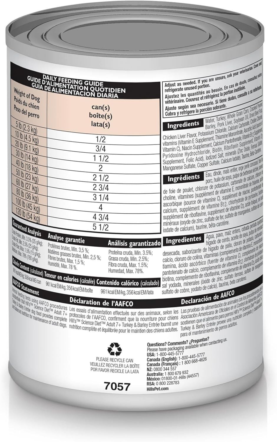 Hill'S Science Diet Adult 7+, Senior Adult 7+ Premium Nutrition, Wet Dog Food, Turkey & Barley Loaf, 13 Oz Can, Case Of 12