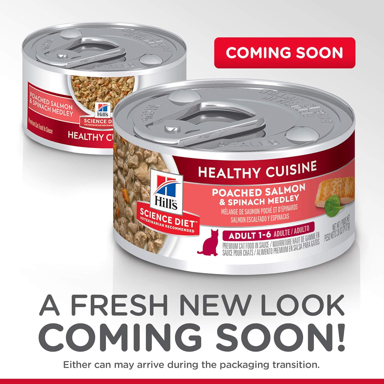 Give Your Grown Cat A Delicious Feast With The Balanced Nutrition He Or She Needs. Hill'S Science Diet Adult Healthy Cuisine Poached Salmon & Spinach Medley Combines The Delicious Flavors Of Real Salmon And Tender Spinach In A Mouthwatering Sauce. The Precise Balance Of Key Nutrients Provides Adult Cats With Quality Protein For Lean Muscle, And Clinically Proven Antioxidants For Strong Feline Immunity. If You Want To Keep Your Kitty Happy During The Prime Years, This Adult Cat Food Made With Natural Ingredients Is One To Try. ThereāS More To Love With The New Look Of Science Diet. Some Of Our Products Also Have New Names & New Formulas