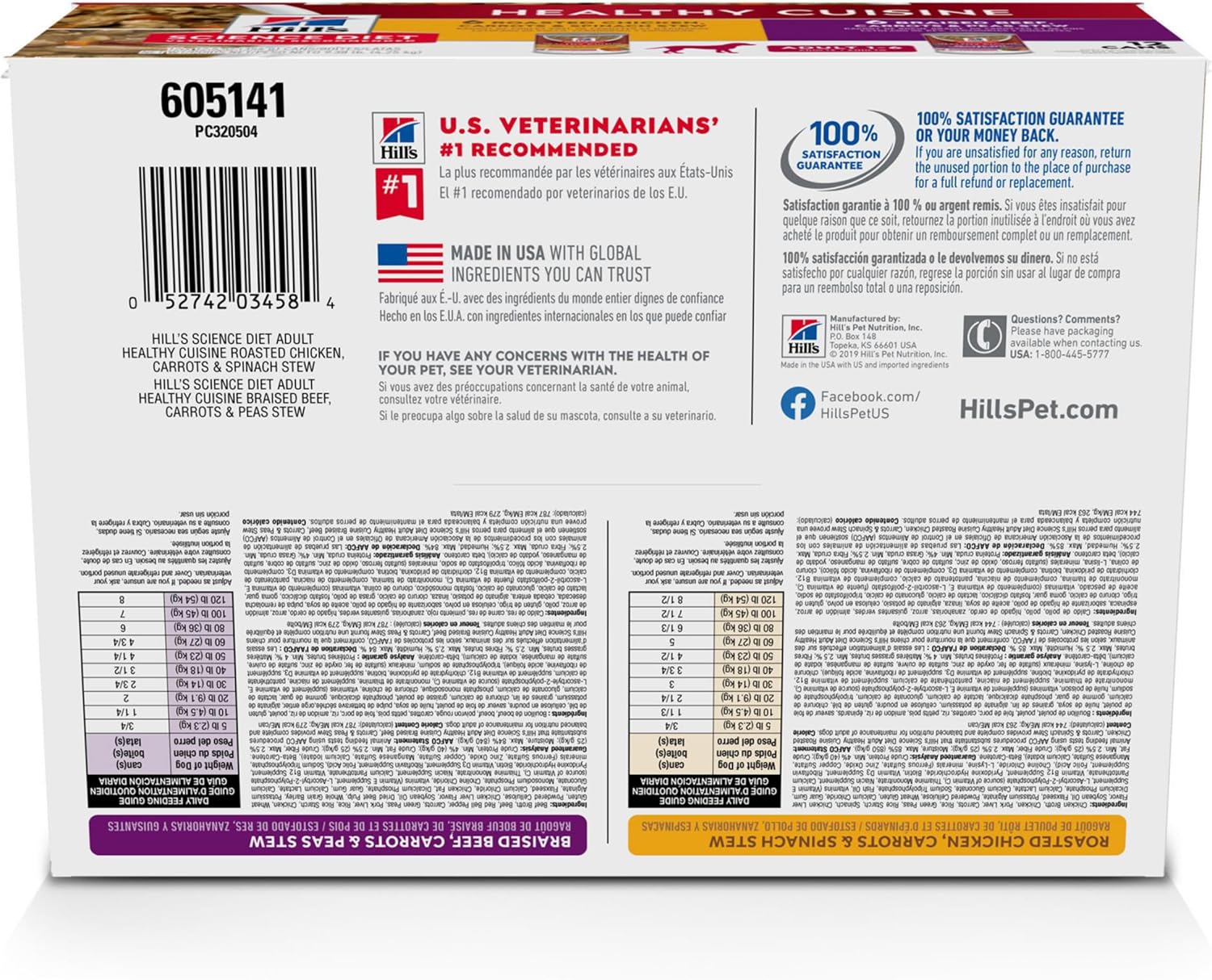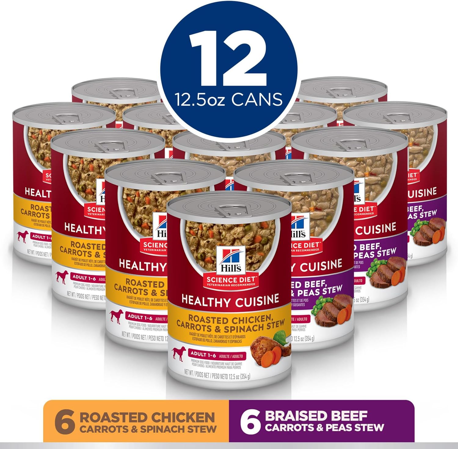 Hill'S Science Diet Healthy Cuisine, Adult 1-6, Great Taste, Wet Dog Food, Variety Case: Roasted Chicken, Carrots & Spinach; Braised Beef , Carrots & Peas Stew, 12.5 Oz Can Variety Case, Case Of 12