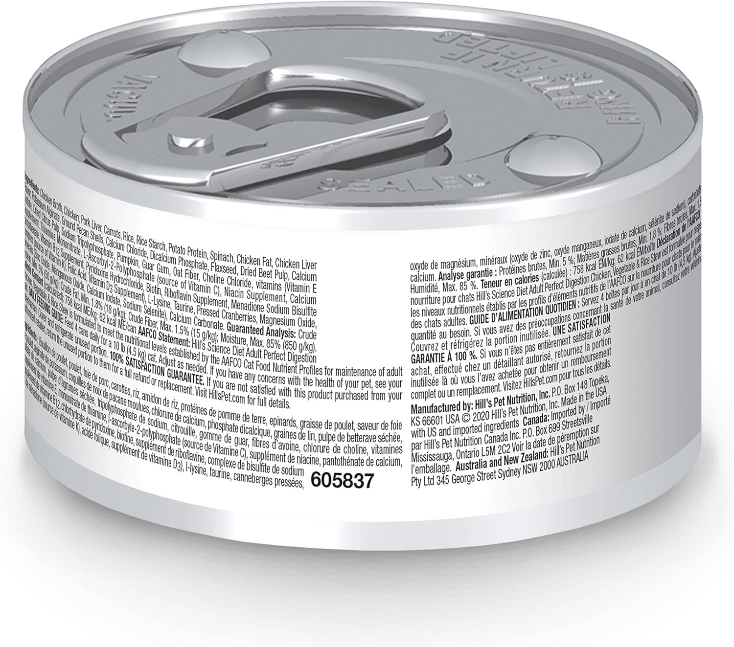 Hill'S Science Diet Perfect Digestion, Adult 1-6, Digestive Support, Wet Cat Food, Chicken, Vegetables & Rice Stew, 2.9 Oz Can, Case Of 24