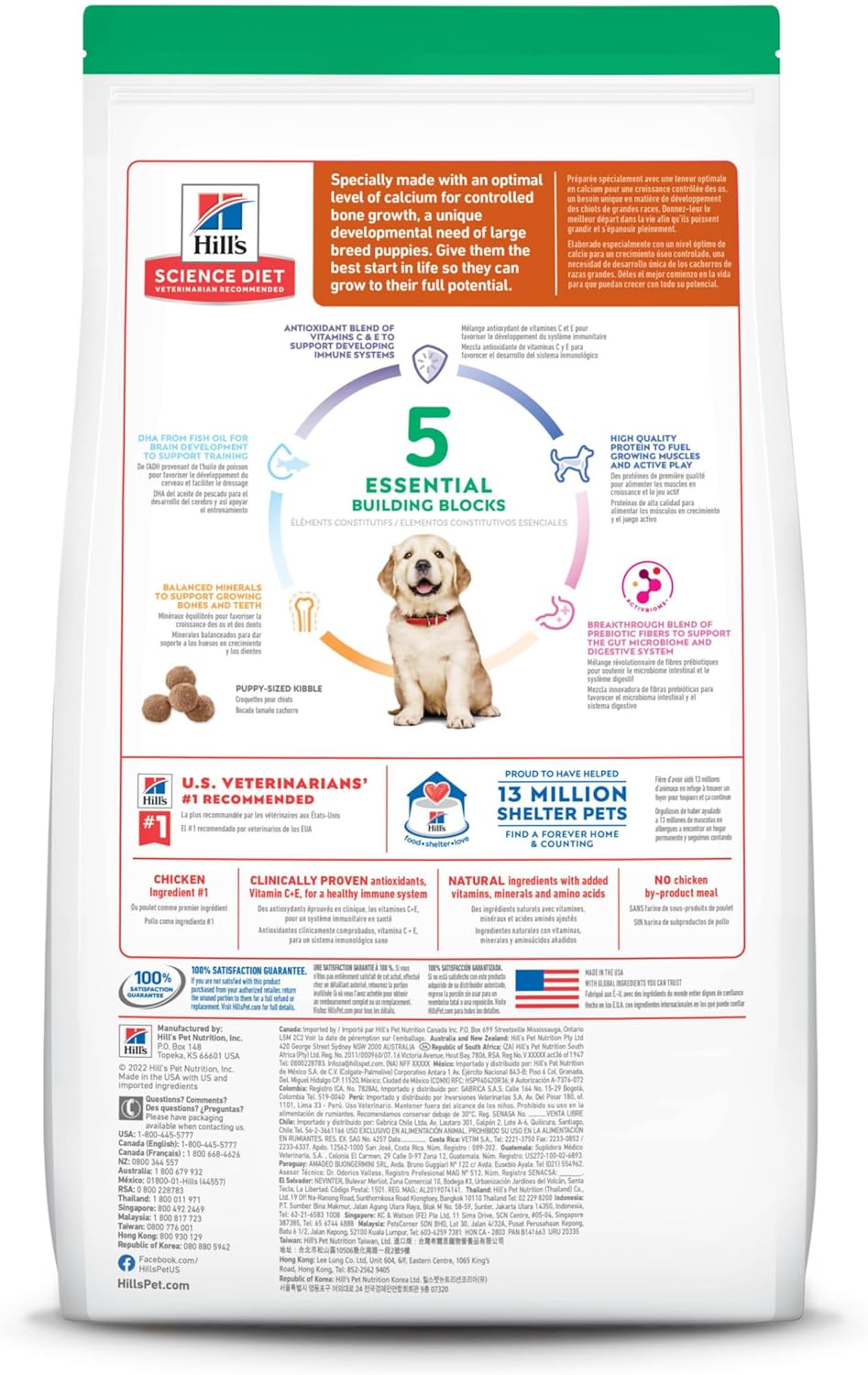 Hill'S Science Diet Puppy, Large Breed Puppy Premium Nutrition, Dry Dog Food, Chicken & Brown Rice, 15.5 Lb Bag
