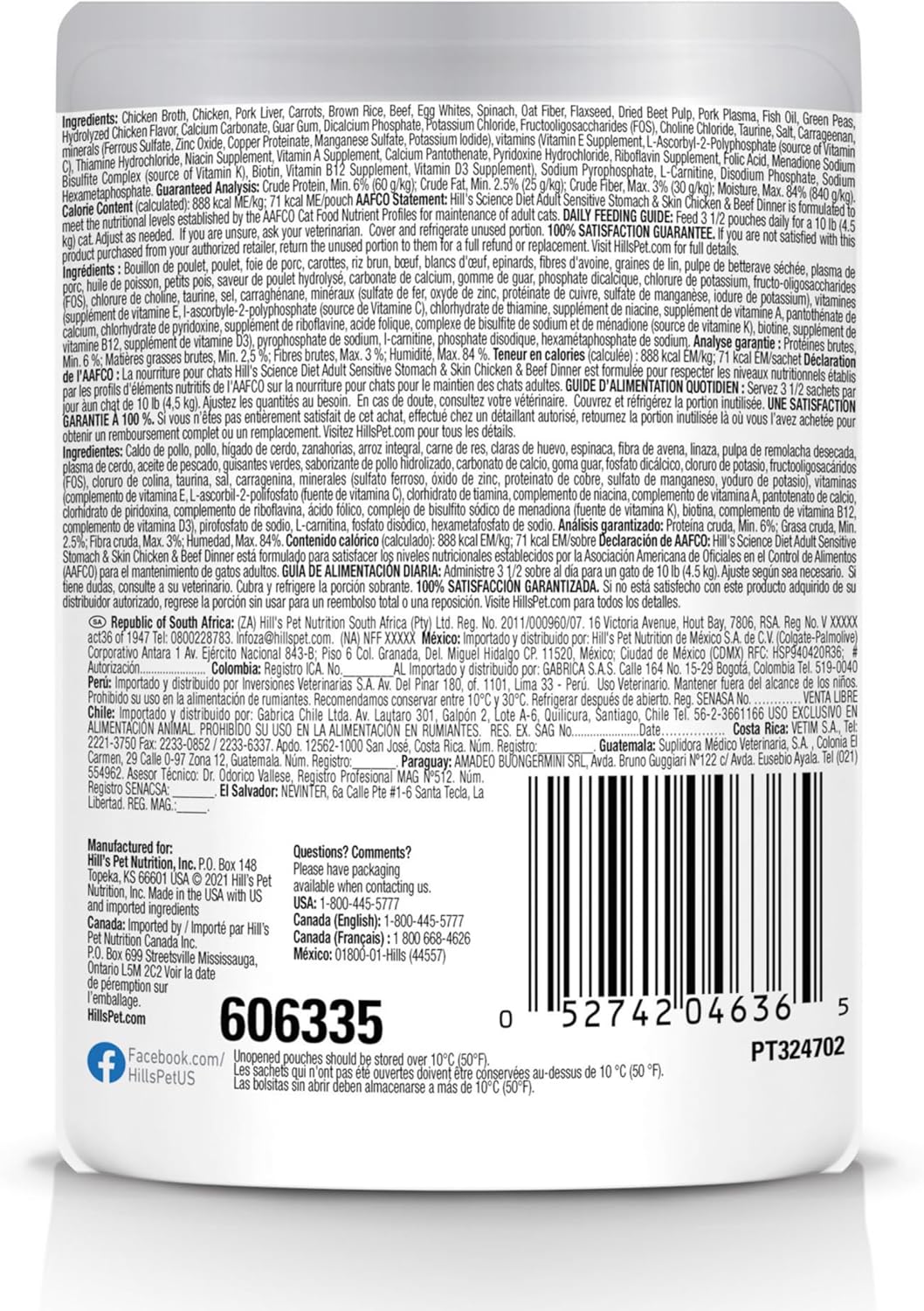 Hill'S Science Diet Sensitive Stomach & Skin, Adult 1-6, Stomach & Skin Sensitivity Support, Wet Cat Food, Chicken & Beef Stew, 2.8 Oz Can, Case Of 24