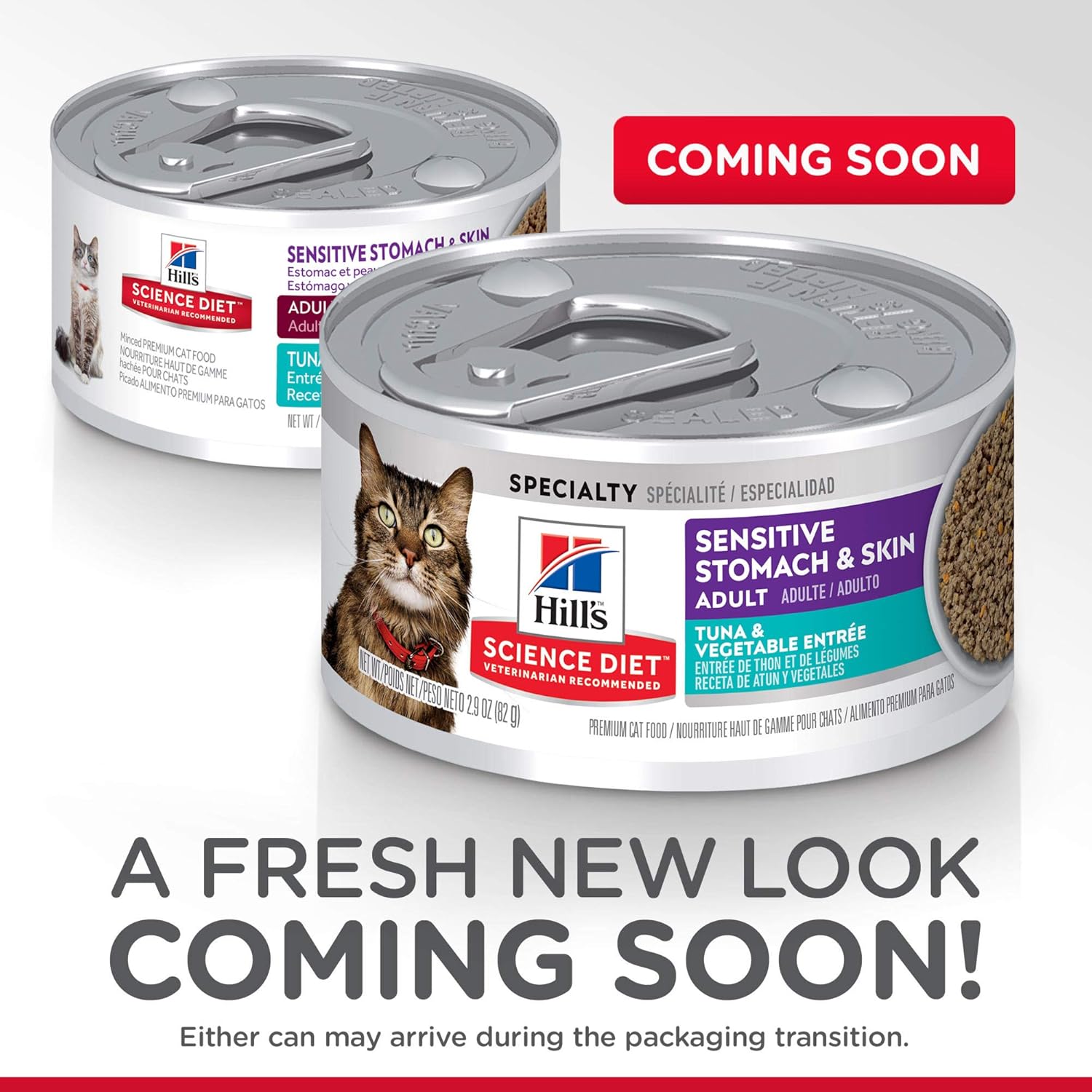 Hill'S Science Diet Sensitive Stomach & Skin, Adult 1-6, Stomach & Skin Sensitivity Support, Wet Cat Food, Tuna & Vegetables Minced, 2.9 Oz Can, Case Of 24