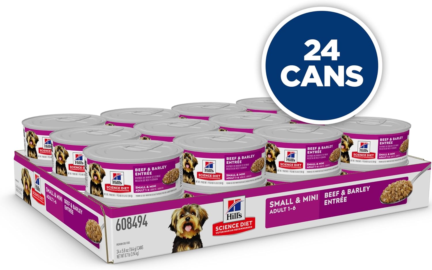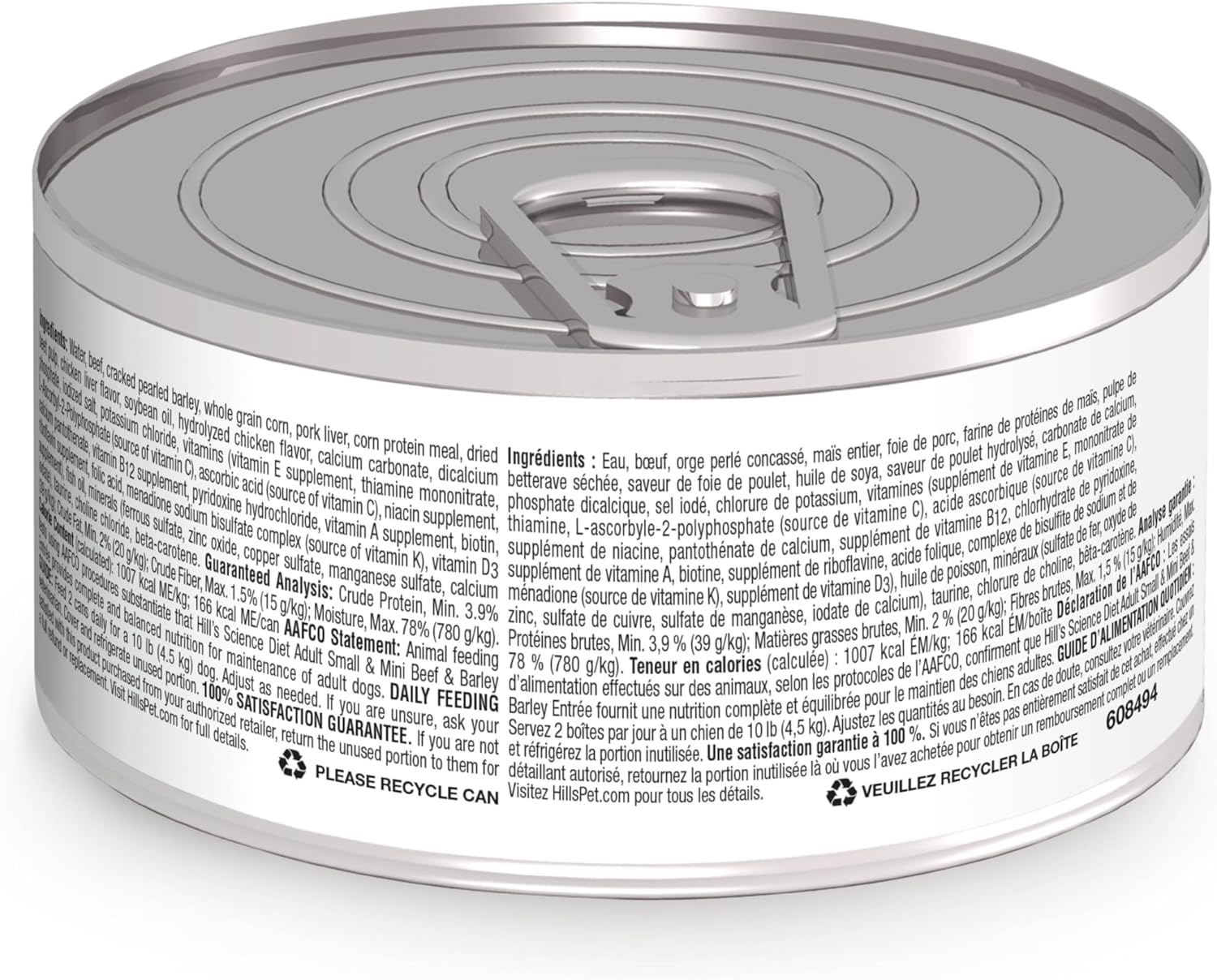 Even Little Dogs Have Big Appetites, And Your Small-Breed Dog Is No Exception. Hill'S Science Diet Adult Small & Mini Beef & Barley EntrƩe Dog Food Is Tailored Nutrition For The Unique Needs Of Small & Mini Dogs During The Prime Of Their Life. Packed With Quality Protein To Maintain Lean Muscle, This Canned Dog Food Made With Natural Ingredients Contains An Antioxidant Blend Specially Formulated For Your Little Dog