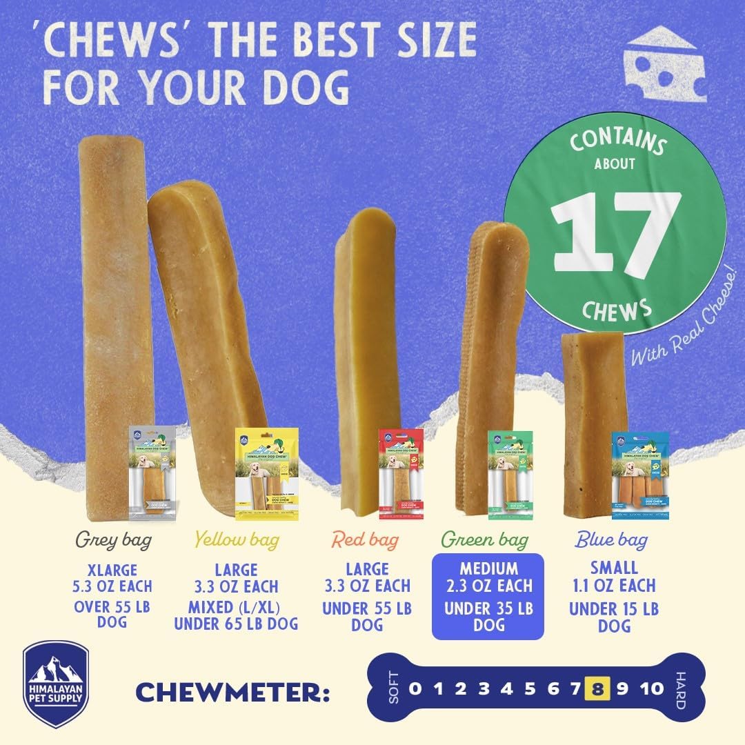 Medium Himalayan Hard Cheese Chews - Best For Dogs 35 Pounds And Larger. Chews Sized Right For Your Dog'S Weight, Temperament And Activity Level. 2. 5 Pounds Of Chews Per Tub