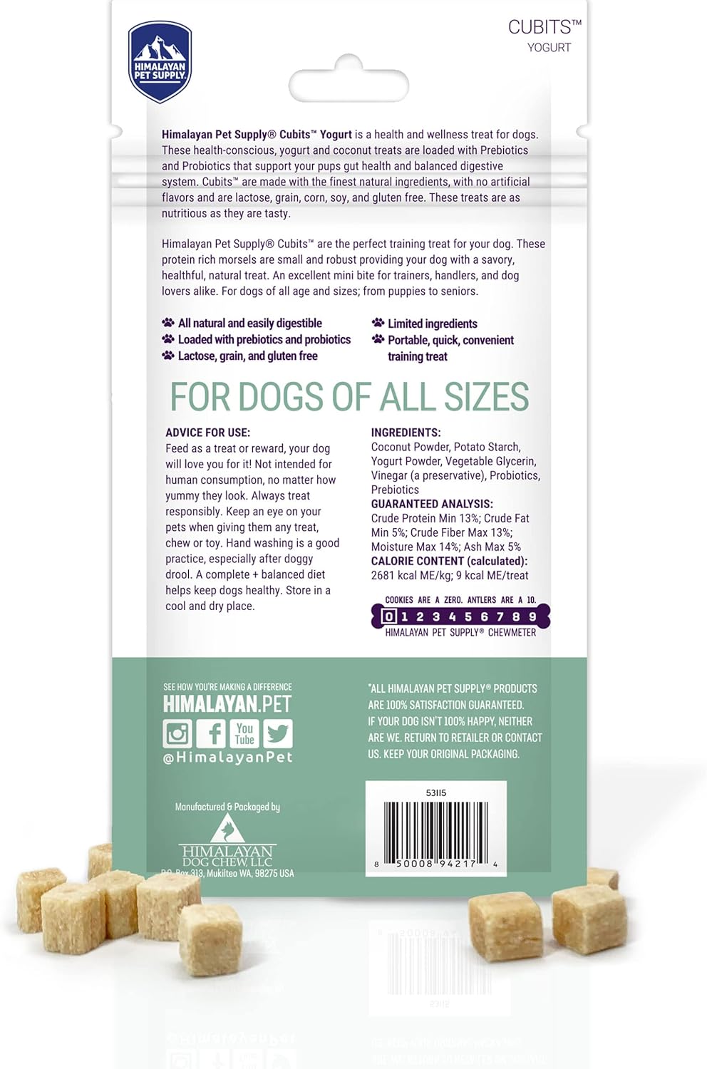 Himalayan Dog Chew Cubits With Yogurt | Natural Training Treat | Loaded With Prebiotics And Probiotics | No Crumbs - No Sticky Mess | Gluten - Lactose - Soy - Grain Free | 3.5 Oz Per Pouch