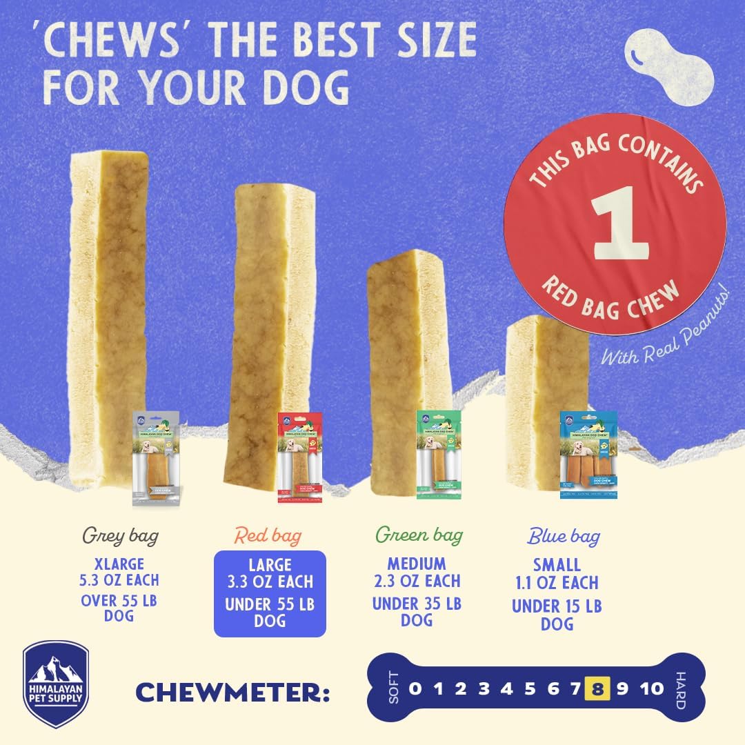 Peanut Butter Flavor: Included Is One Large, 3.3 Oz Peanut Butter Flavored Himalayan Yak Cheese Stick - Made Using Our Traditional Himalayan Cheese Recipe, But With Added Bits Of Peanuts For More Flavor! Ideal For Dogs 55 Pounds And Smaller, Not For Dogs Younger Than 12 Weeks