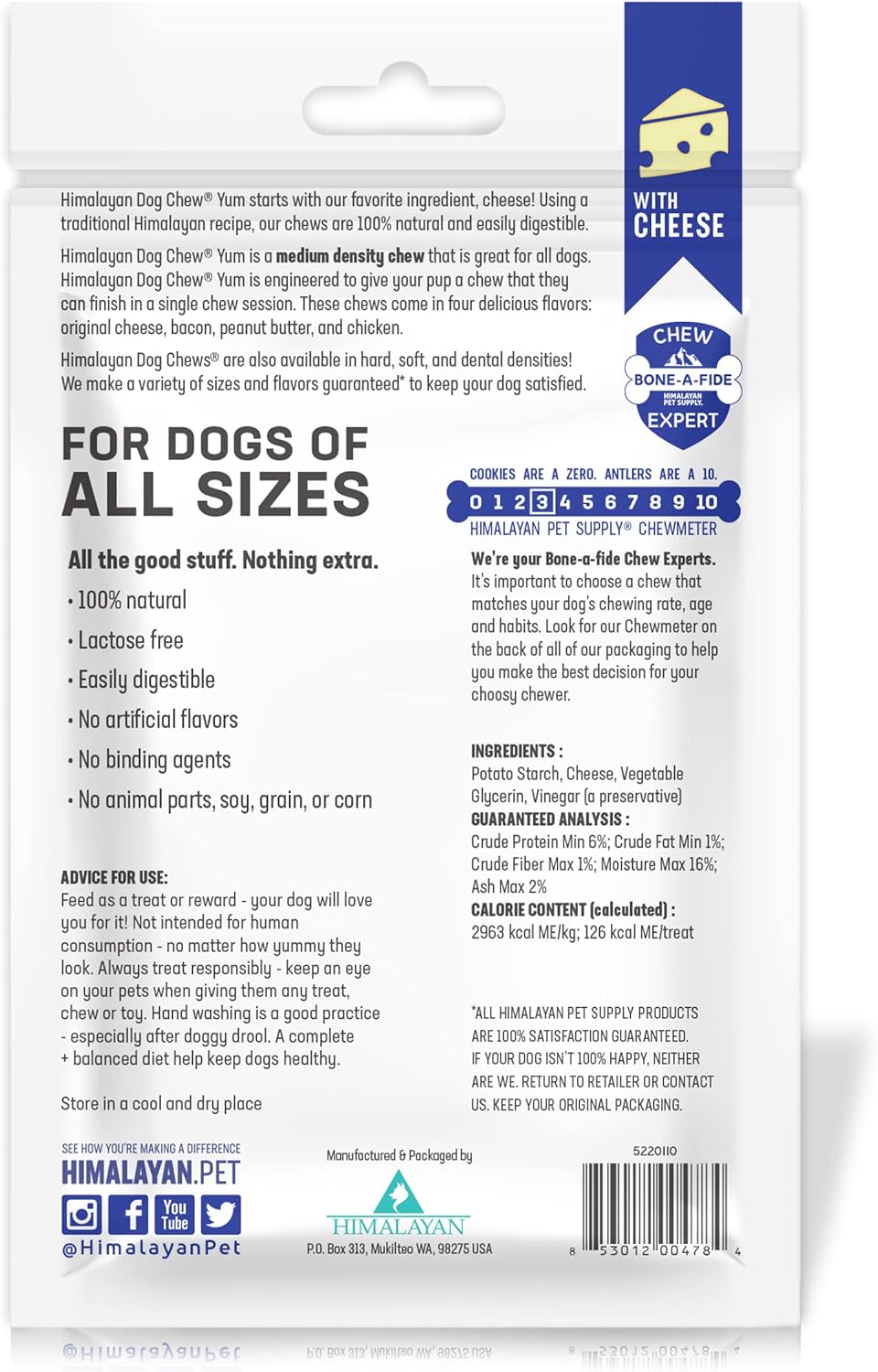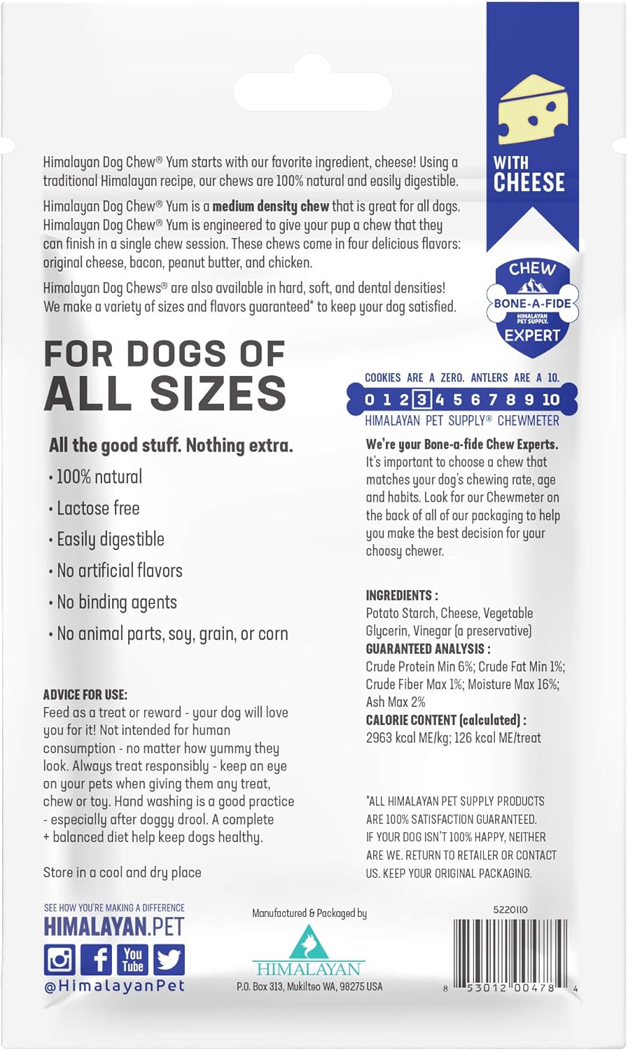 For Dogs Of All Sizes: Himalayan Hard Cheese Chews With A Medium Density That Are Great For Dogs Of All Sizes. Includes 3 Dog Yak Chews Per Pouch