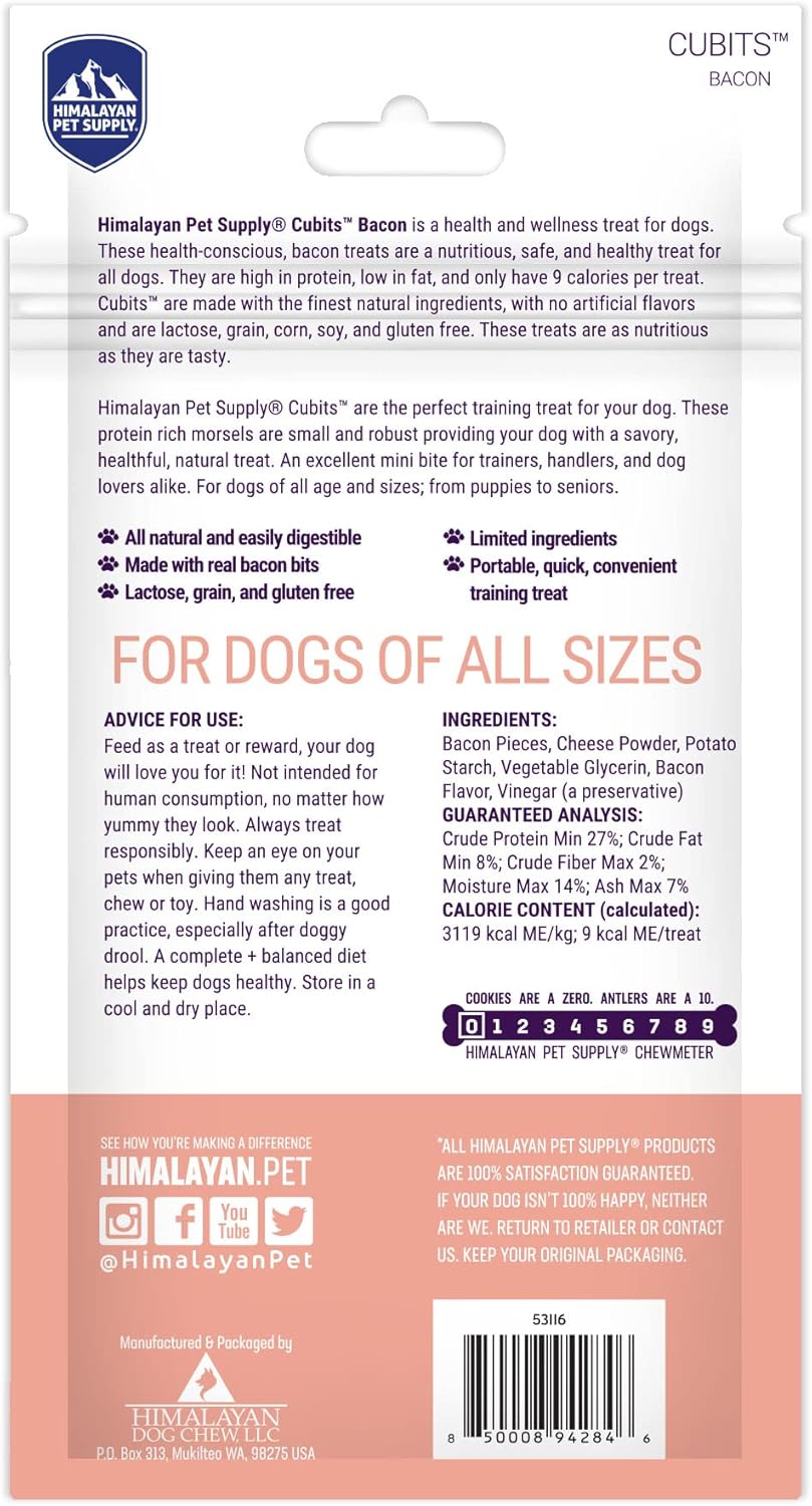 Himalayan Pet Supply Cubits With Bacon | Natural Training Treat | No Crumbs - No Sticky Mess | Gluten - Lactose - Soy - Grain Free | 3.5 Oz Per Pouch, Cubits Bacon