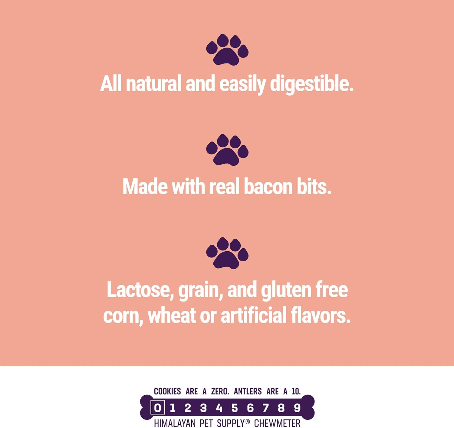 Proudly Made In The Usa Himalayan Pet Supply Cubits With Bacon, A Health And Wellness Treat For Dogs. These Health-Conscious, Bacon Treats Are An Excellent Source Of Protein, Fiber, Heart-Healthy Fats, Vitamin B, Niacin, And Vitamin E. They Help Maintain Healthy And Well-Balanced Skin. Cubits Are Made With The Finest Natural Ingredients, With No Artificial Flavors Or Preservatives, And Are Lactose, Grain, Corn, Soy, And Gluten Free. These Treats Are As Nutritious As They Are Tasty. Himalayan Pet Supply Cubits Are The Perfect Training Treat For Your Dog. These Protein Rich Morsels Are Small And Robust Providing Your Dog With A Savory, Healthful, Natural Treat. An Excellent Mini Bite For Trainers, Handlers, And Dog Lovers Alike. For Dogs Of All Age And Sizes; From Puppies To Seniors.. All Natural And Easily Digestible.. Great Source Of Protein, Heart Healthy Fats, And Niacin.. Portable, Quick, Convenient Training Treat.. Limited Ingredients.. Lactose, Grain, And Gluten Free